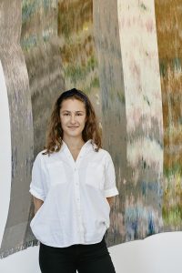 Her work with fiber also inherently makes abstract art more accessible. She explains that an abstract painting can feel alienating and confusing to an individual without an art background, but when the medium is something that person interacts with every day, the piece becomes instantly relatable.