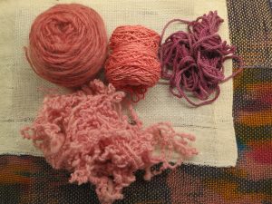 Various spun fibers in Victoria’s studio, all dyed using cochineal. Photo: Quinne Myers.