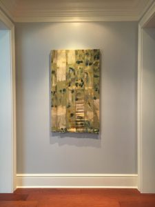 She displays them on the wall exactly as they are without stretching or folding, or on wooden platforms that are custom-carved for each piece, lending depth and showcasing those organic lines.
