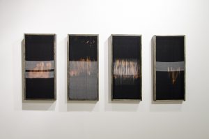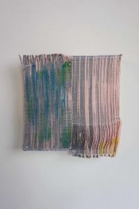 Victoria Manganiello Lucent Trans 2015, cotton, ilk, natural and synthetic dye (hand dyed and woven, framed in artist made frames), series of 4: 35″ x 17″ each. Photo by Artist.