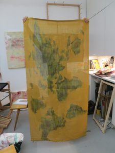 Victoria Manganiello Mantis 2015, cotton, natural and synthetic dye, (hand dyed and woven, stretch), 45″ x 23″. Photo by Artist.