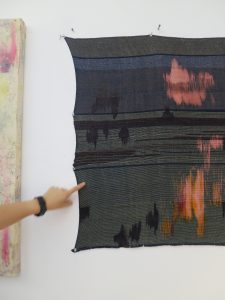 The concepts of non-linear time and the interconnectedness of humanity play large parts in her work. Weaving itself, she says, is like any individual’s life; just like a woven textile that takes so many moments to create and places those moments on display, all parts of your experience, past and present, exist simultaneously within you.
