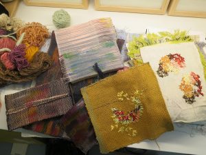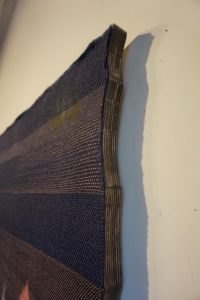Victoria Manganiello Untitled #16 2016, cotton, natural and synthetic dye (hand dyed, spun, woven, atop custom platform which matches natural selvedges of canvas), 8.5″ x 9″. Photo by Artist.