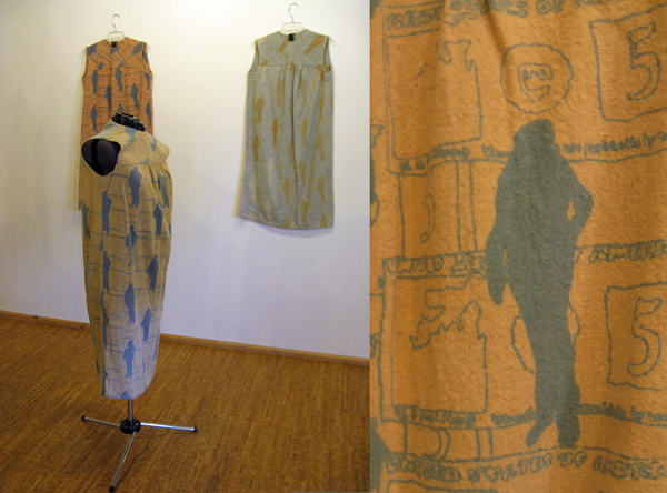 Following the garment thread, Jo Stealey created Ode to Susan (2011), a delicate apron made with processed leaves and cotton paper. The feminine mystique form features ties made of intricately machine-embroidered words like charm and entice to convey the often conflicting roles of wife and mother. When asked about the collaborative experience, Stealey reflects: “I believe all of us found this process very energizing. It pushed us beyond our current creative ruts. Although [there were] moments of paralysis as we digested the discussions about our work, we have all grown and evolved as artists.”