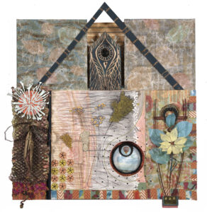I like the word bricolage (construction or creation from a diverse range of available things) – collage implies more similarity in the materials than I work with. I consider myself a mixed media artist – though there may be a more up-to-date term.