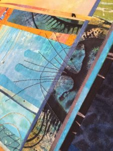 Jennifer Love and the living was easy II (detail) 2016, hand dyed, painted, printed, cotton, fused, stitched, 13” x 13”.