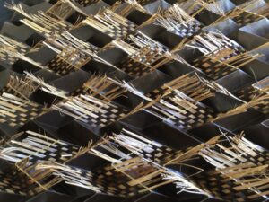 Jeanette Verster Savanah Ripples (detail) 2021, paper, cordyline australis fiber, origami, woven, 31.5″ x 31.5″. Photo by the artist.