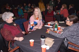 In conjunction with the exhibition, Spend the Day with SDA offered the opportunity for 50 artists to bond with planned and informal activities. The day began in Mosesian’s black box theater which was set up with tables for five or six participants each as well as coffee and snacks. The energy in the room was high and participants slowly settled down to small sessions led by the area reps. It was an ideal way to get to know members in more depth. Each table had its own vibe, sharing conversation, expertise, actual work, websites, and much laughter and enthusiasm. This part of the day was rated highly in a follow-up survey, and there definitely is a desire to plan other way SDA members can interact in person within the region to expand upon the meetings already held in individual states.