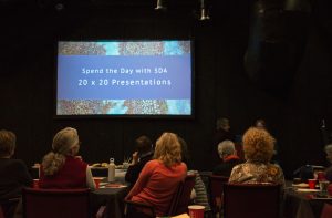 Seven artists created quick presentations of twenty images. The presenters were introduced by Adrienne Sloane, SDA rep from Massachusetts.