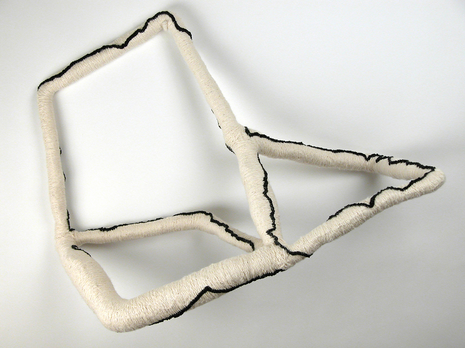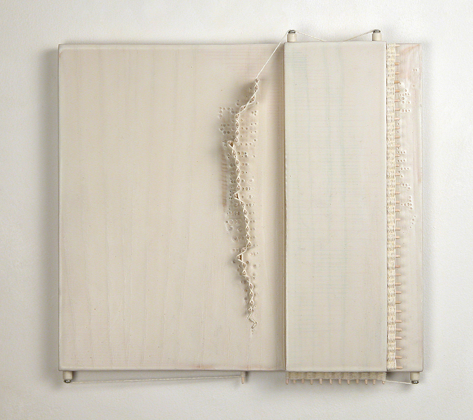wood, cotton thread, toothpicks, dry wall tape, pigmented polymer medium 9 1/4" x 9 5/8" 1 7/8"