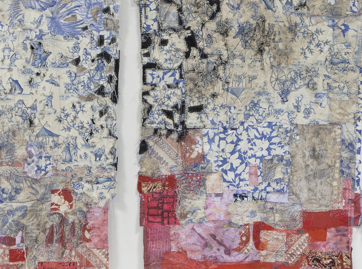 composted toile, painted and printed fabrics, deconstructed clothing, machine and hand stitching 60"w x 52"h