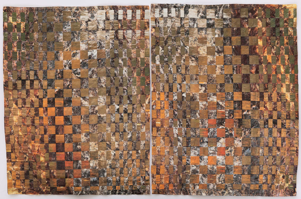 Digital image printed on mulberry paper, woven, Joomchi technique H. 22 x W. 34 x D. .24