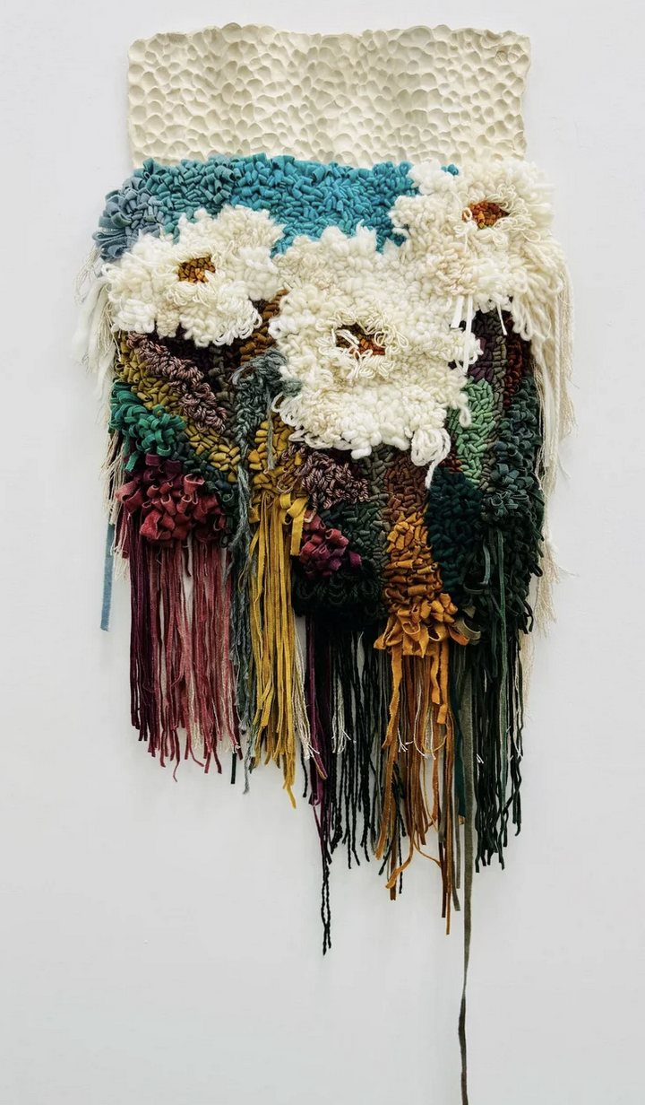 Wool, felt, acrylic, linen, ceramic 50" x 60"