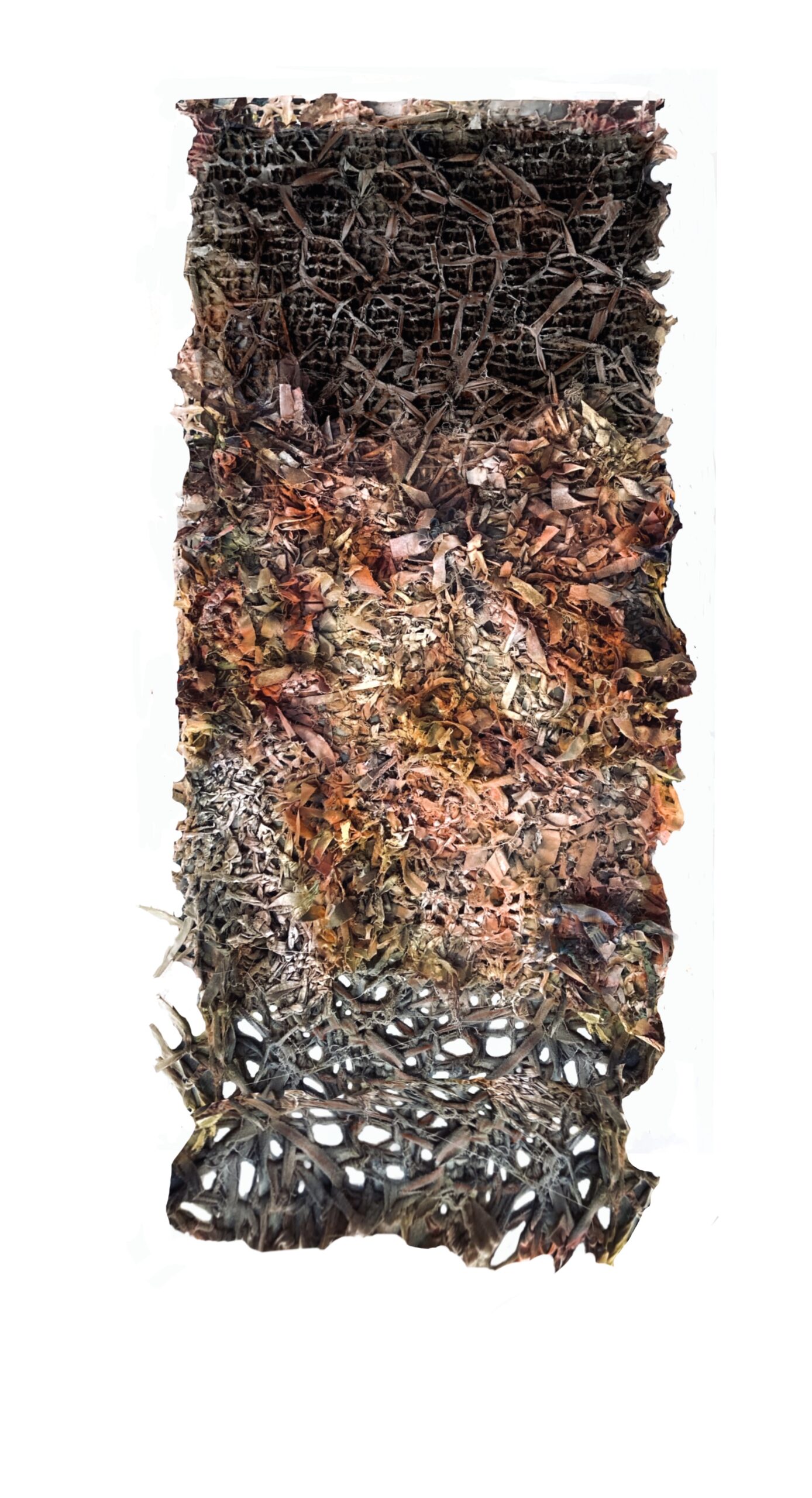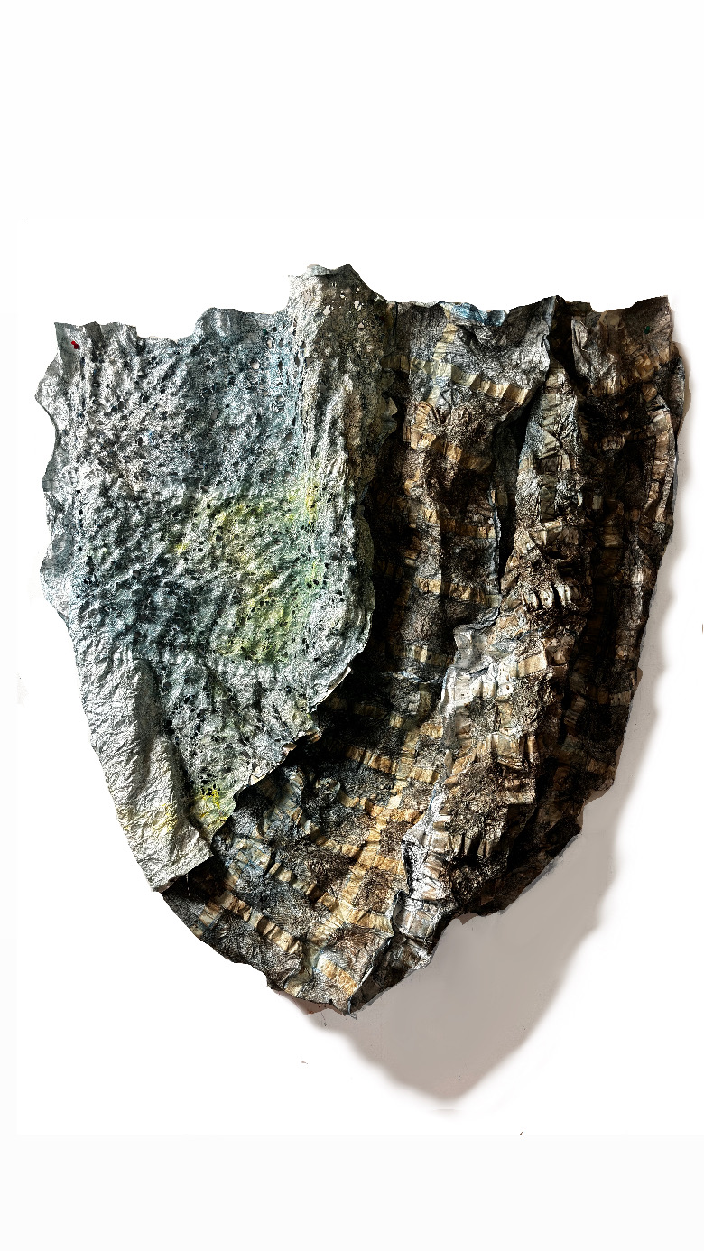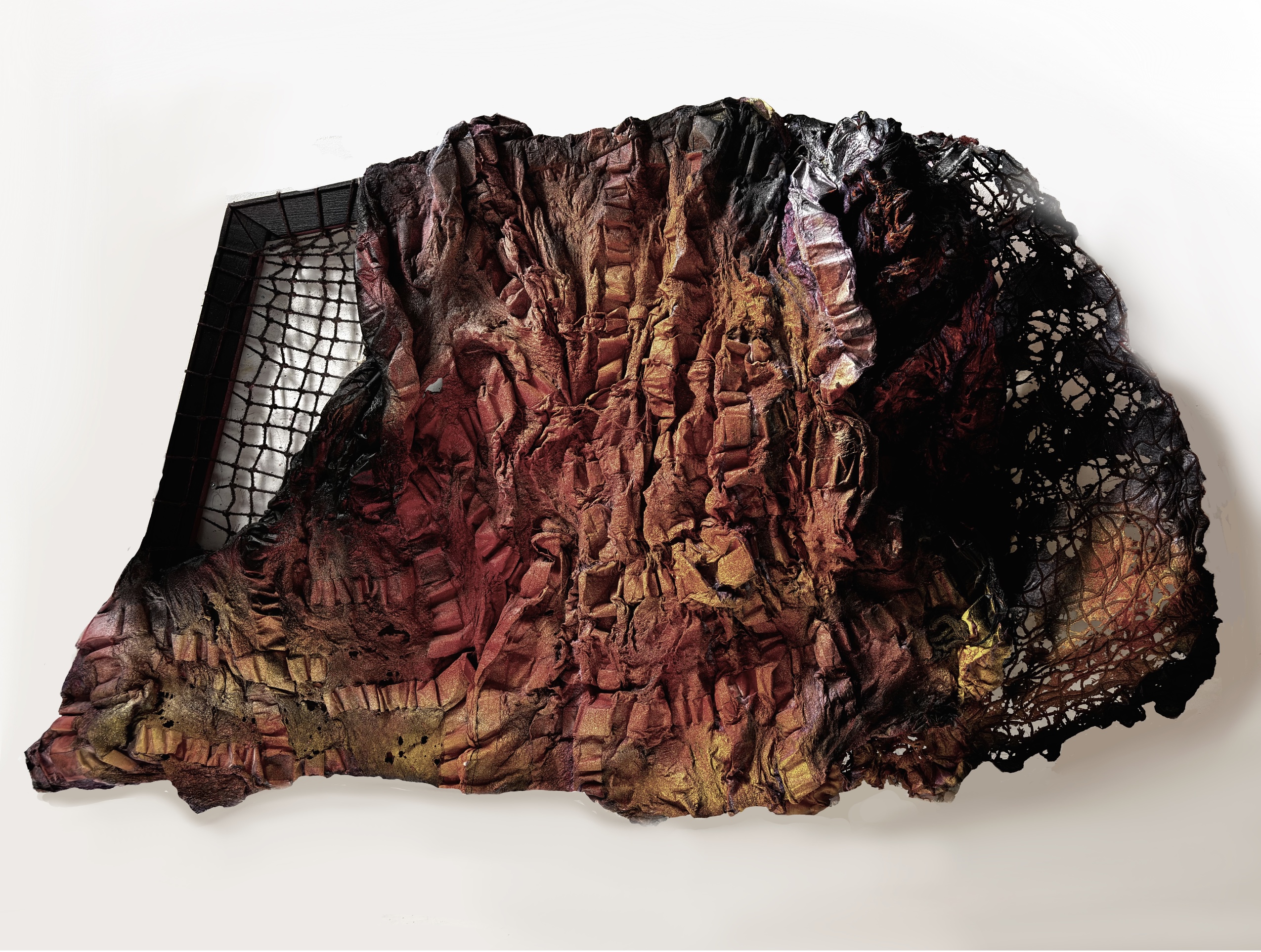 Tyvek, threads, canvas and acrylic paints 50” x 28”