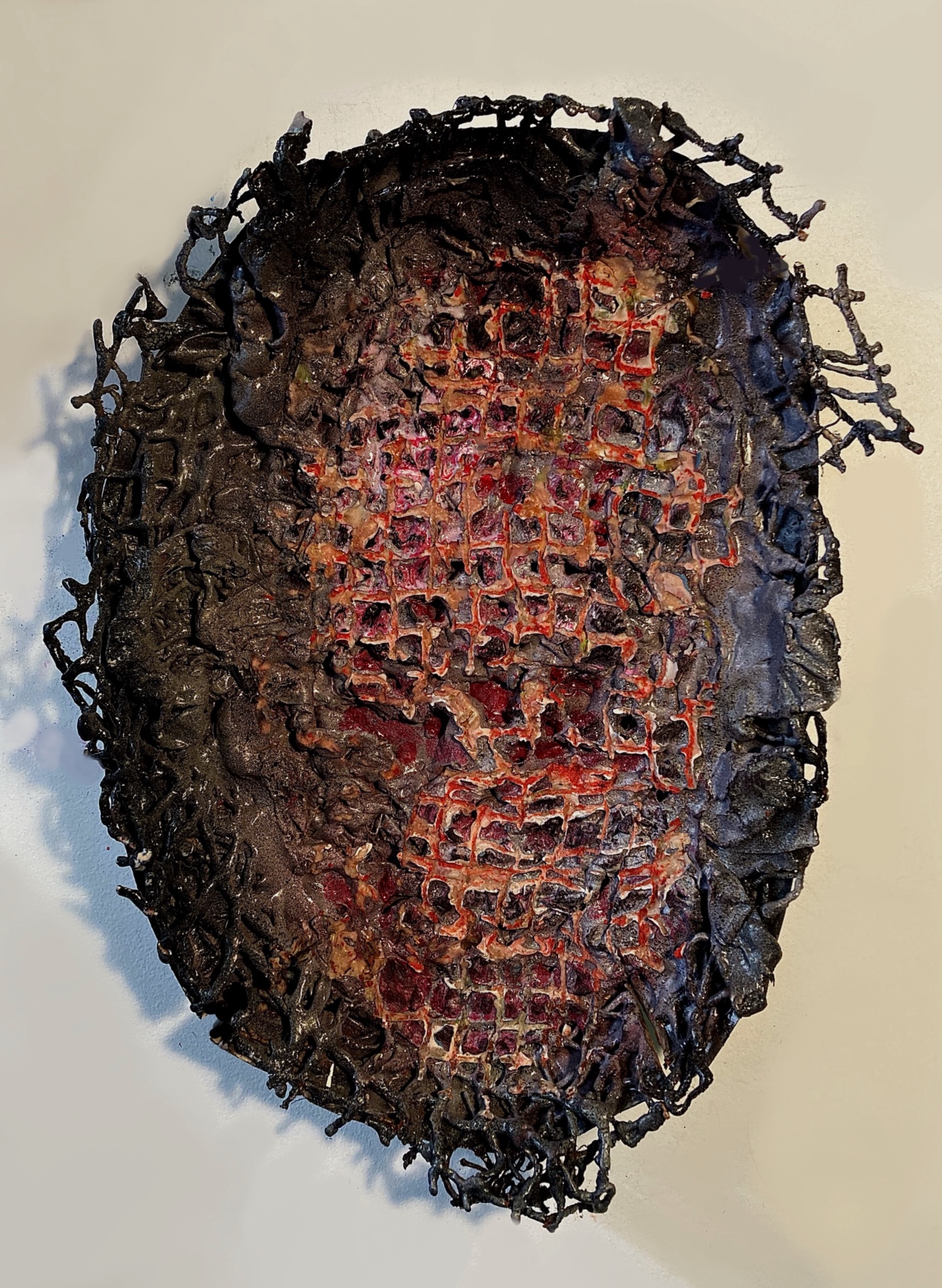 Tyvek, Yarn, Wax and acrylic paints. 20" x 12"