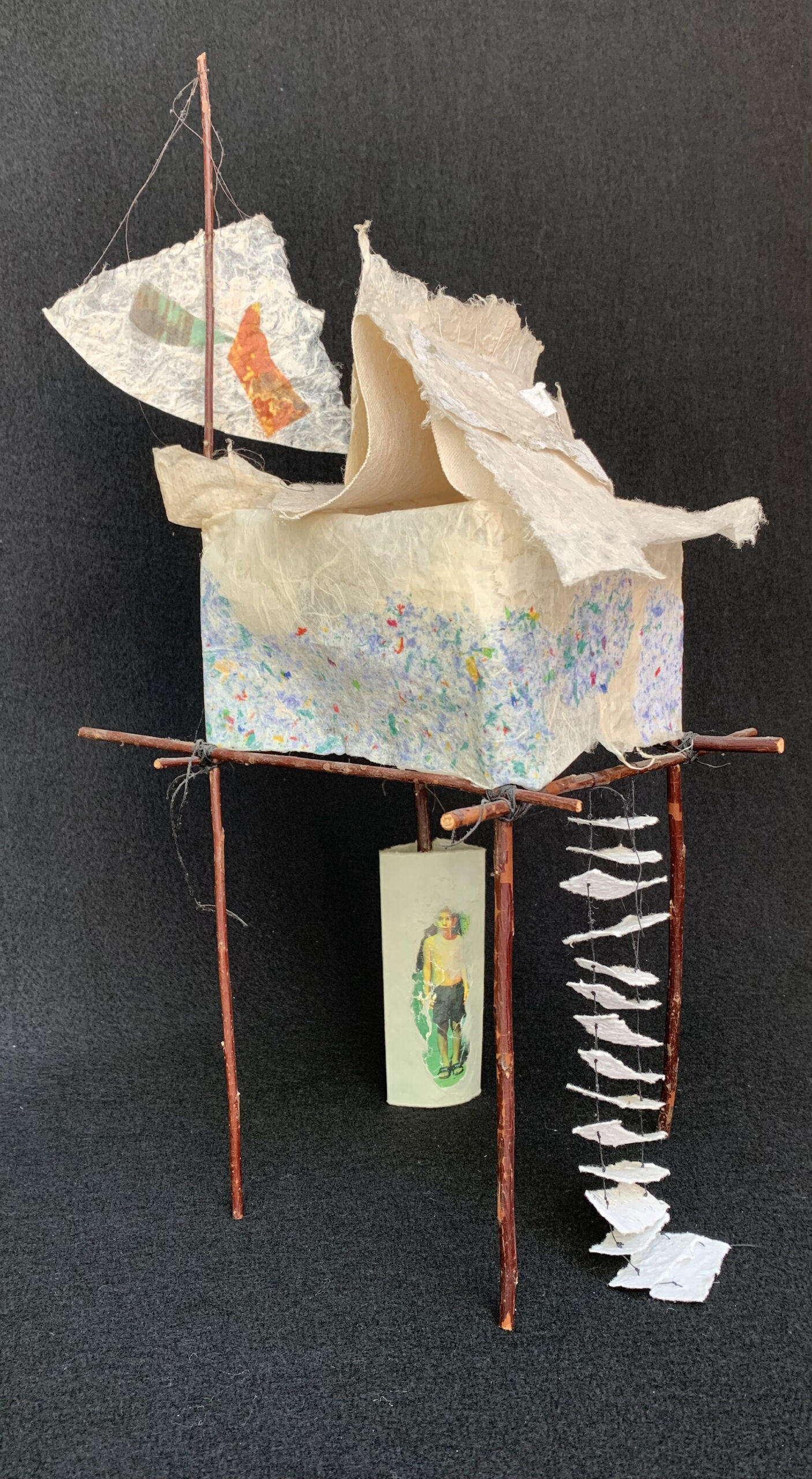 Handmade Paper, Thread, Willow 24"x 8"x 8"