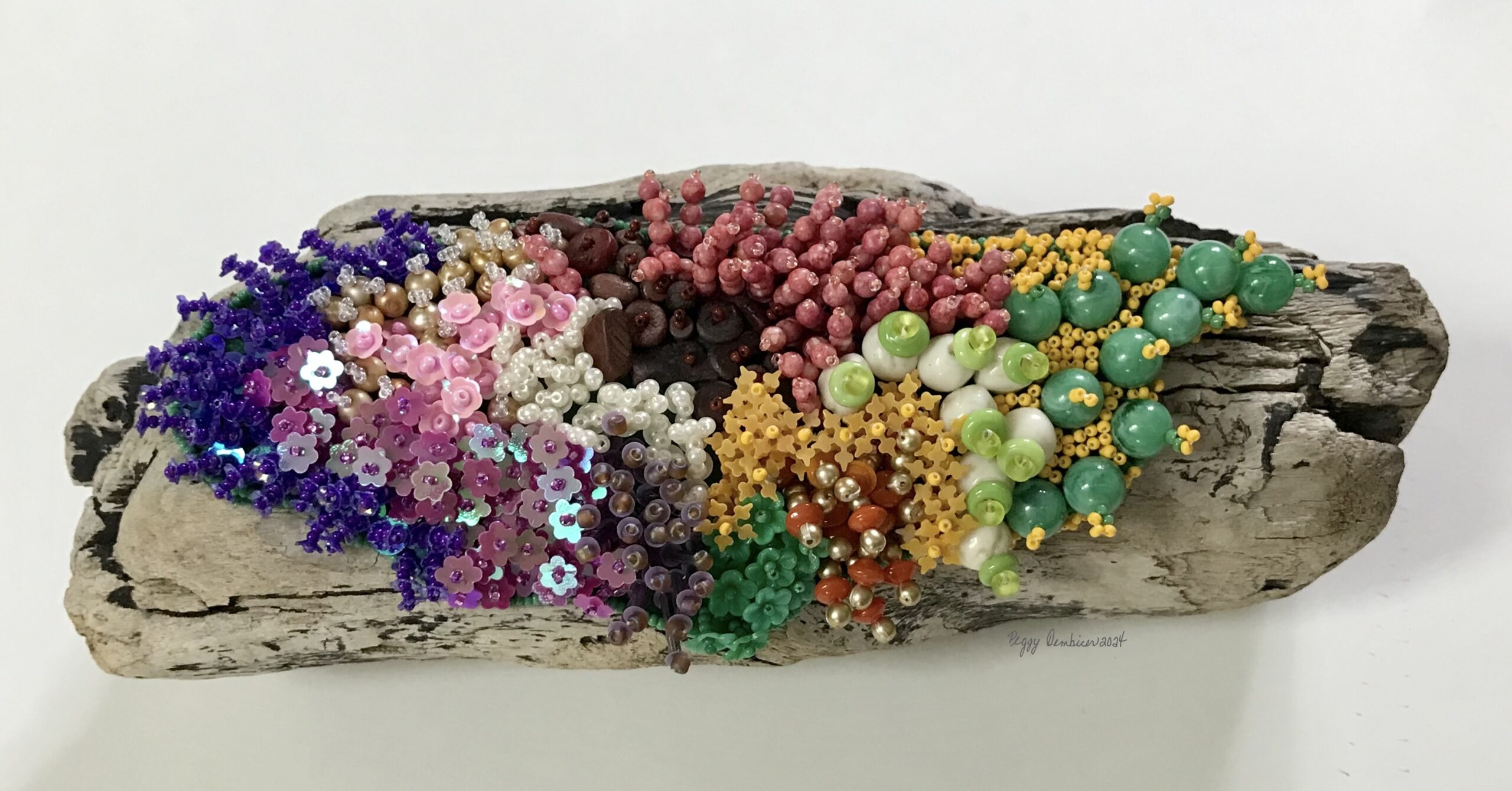 sequins,beads,felt, petrified wood 12' x 6" x 4"