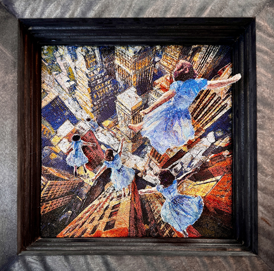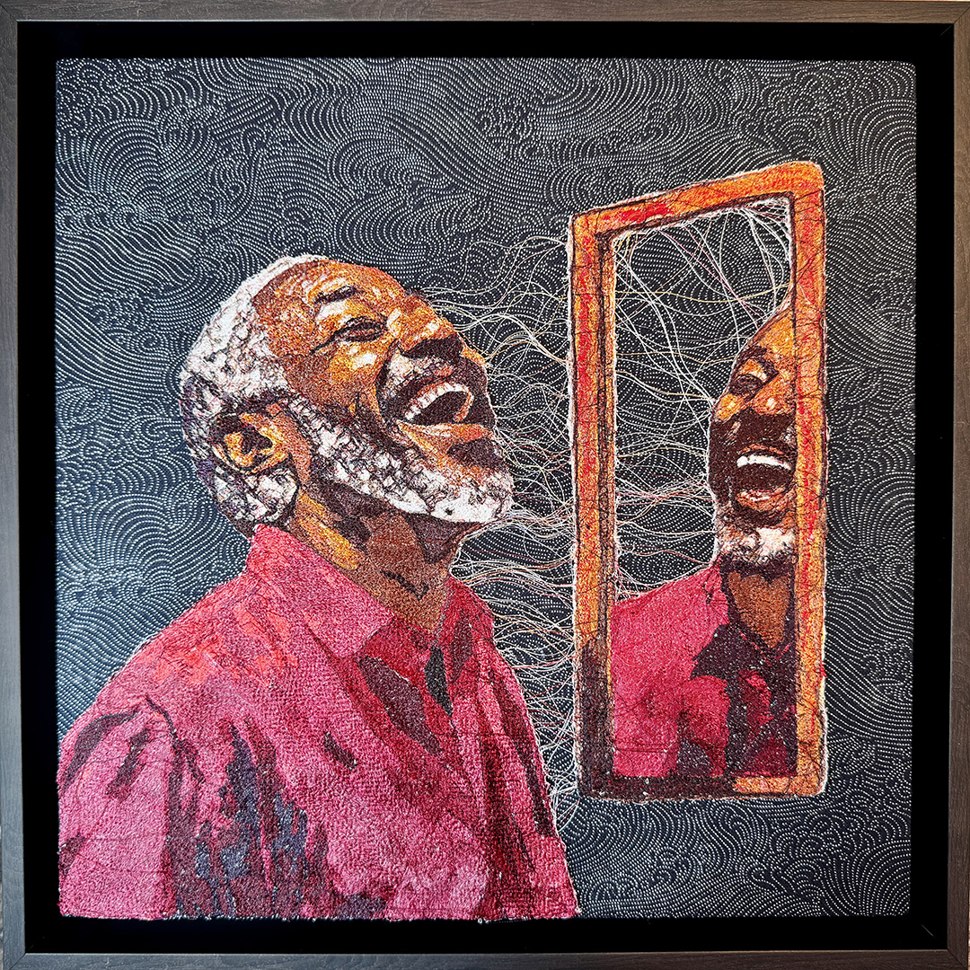 3D Embroidery suspended in a wooden frame 15.56 X 15.5 X 4
