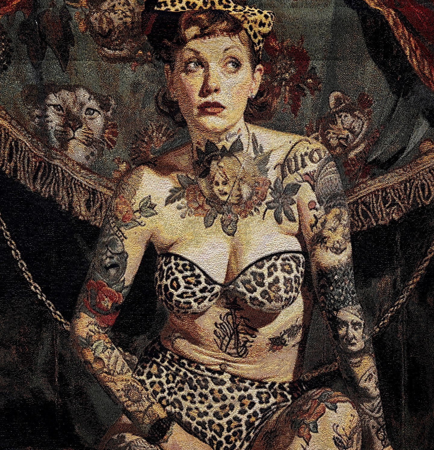 Poppy was a flame-haired spectacle in a world gone gray. A circus performer during the lean years of the 1930s, she traveled from dusty town to dusty town, a riot of color in a time of rationed joy. Her skin was a living canvas—inked from collarbone to ankle with mermaids, saints, and snarling tigers—each tattoo a story, a dare, a memory she refused to forget. In the ring, she dazzled on the trapeze or danced on broken glass, smiling like a girl with nothing to lose. Children adored her, preachers condemned her, and drifters swore they'd seen her fly. In a decade marked by scarcity, Poppy offered something rare: wonder.