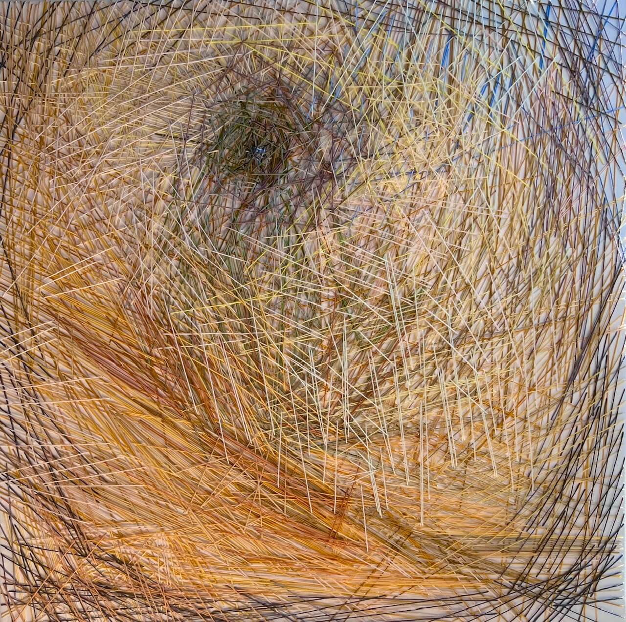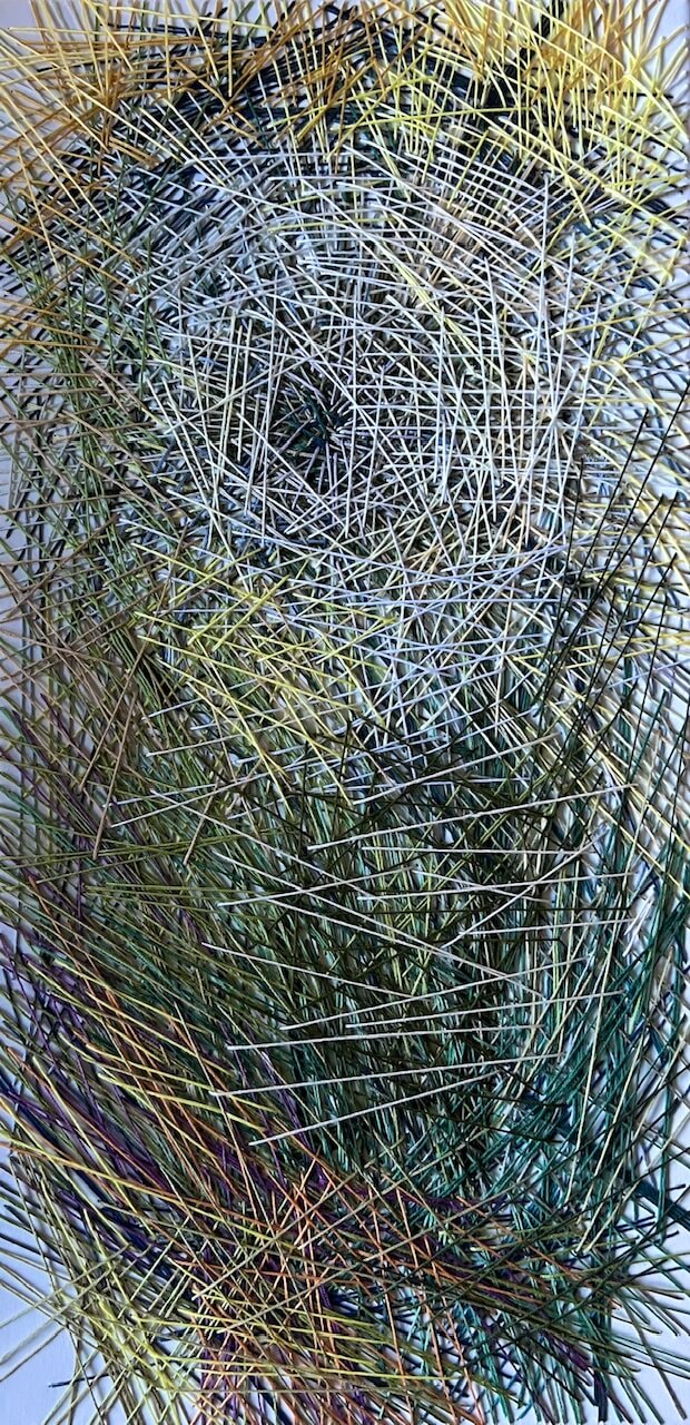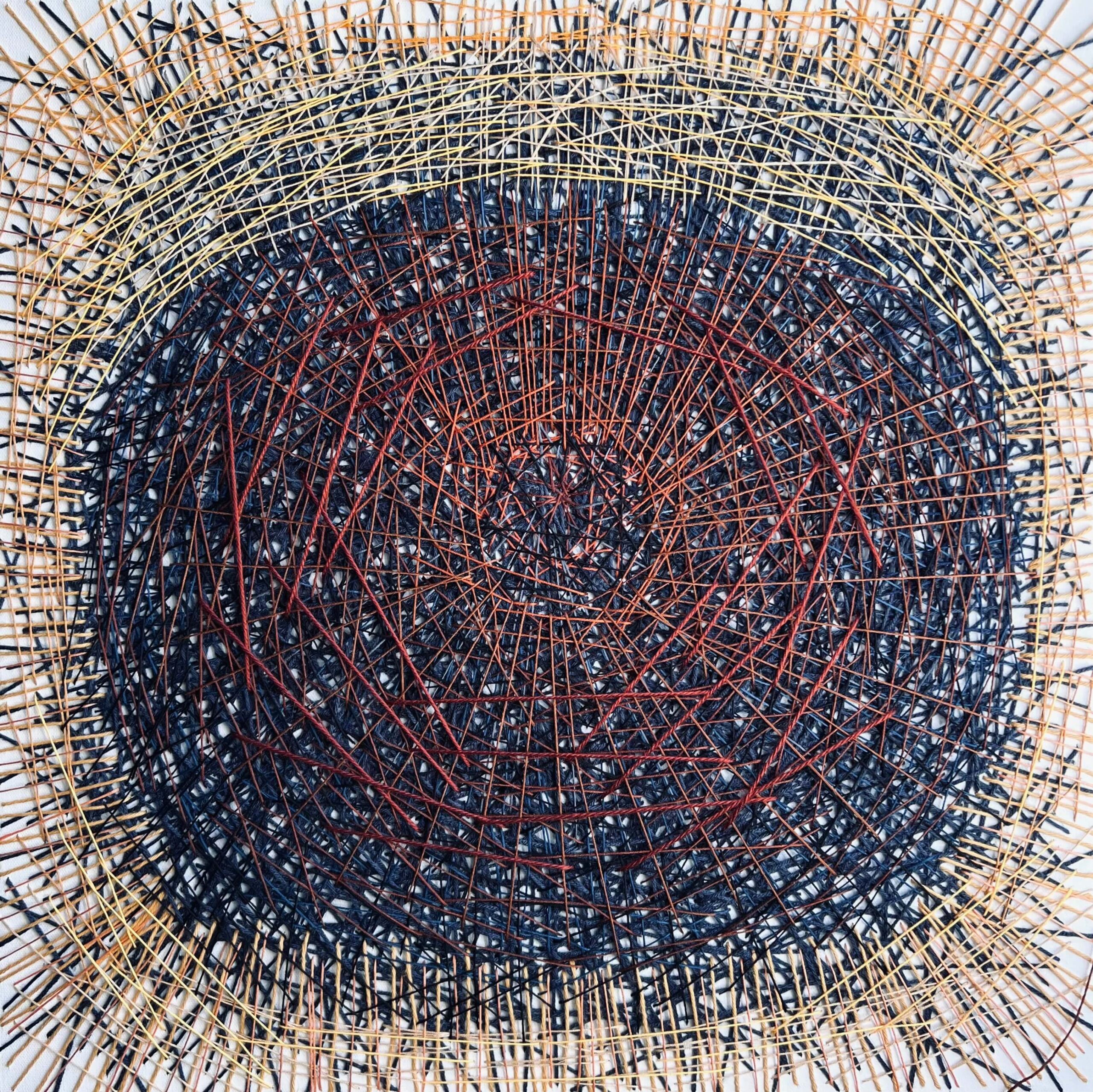 Acrylic, Cotton and silk embroidery fiber on canvas. 24X24X3 inches