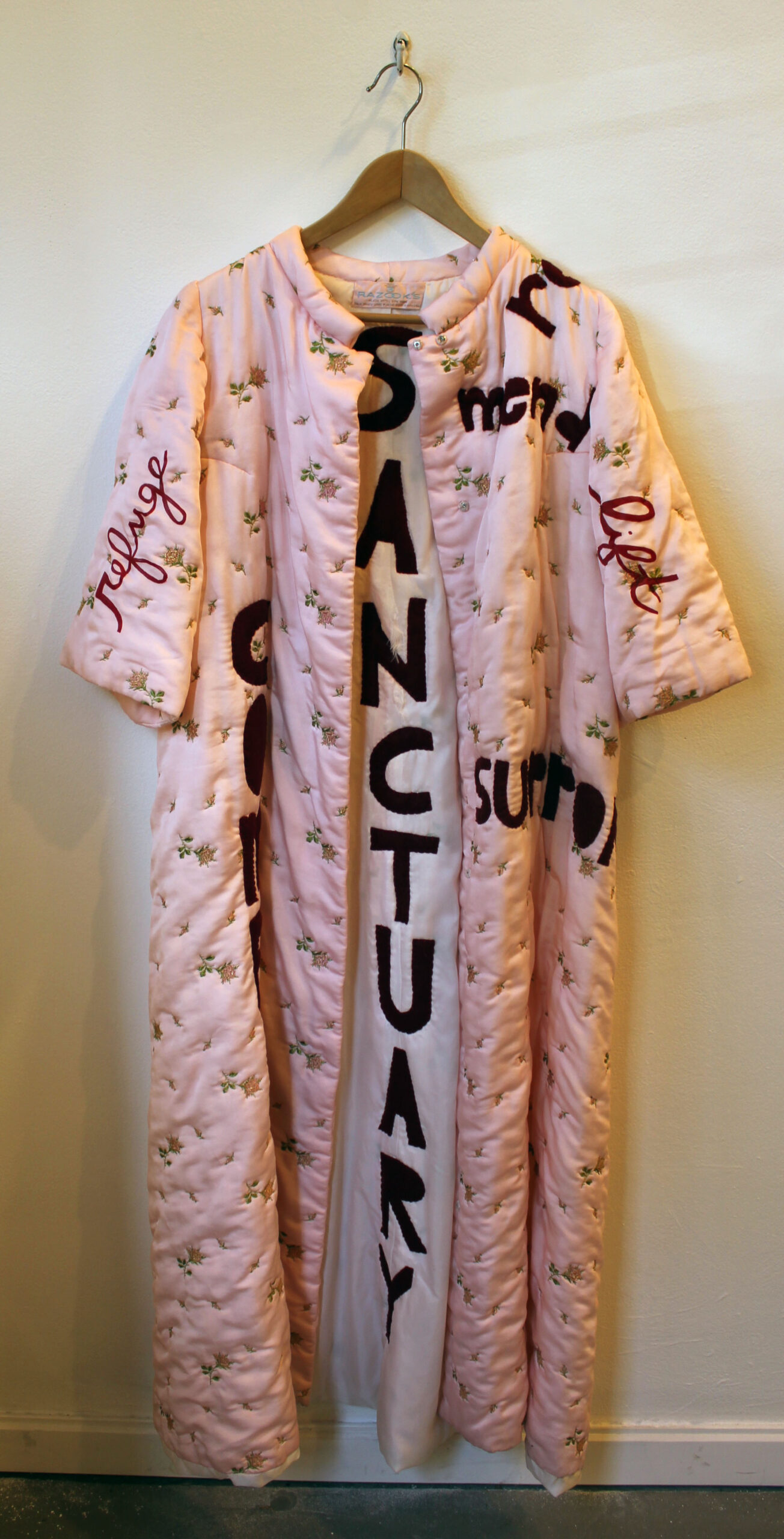 vintage housecoat, paint, felt and thread 53”x26”x 4”