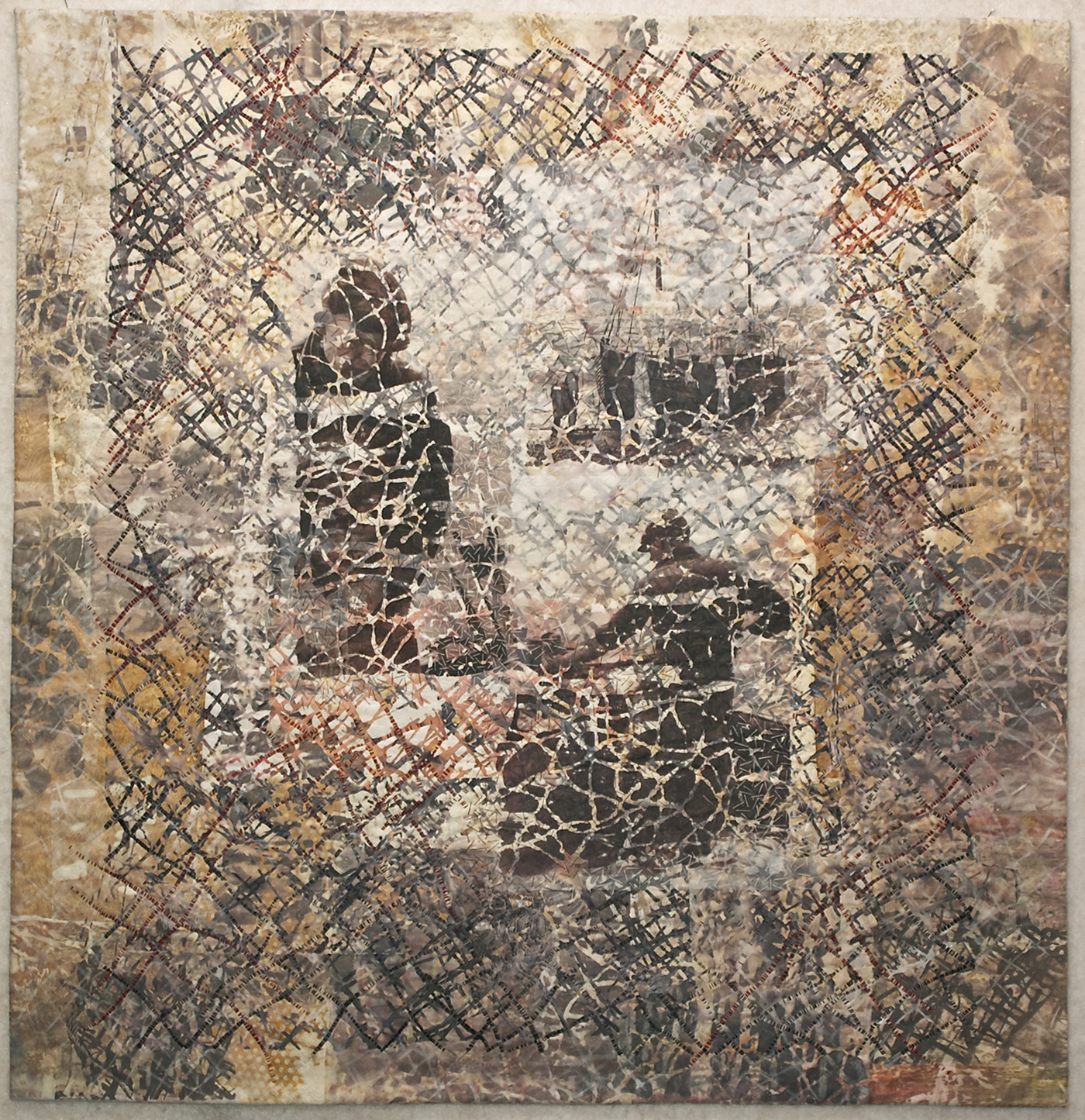 The work of many thousands of makers, both named and unknown, enable me to push the boundaries of work today. This is a copy of a traditional red and white quilt, re made in transparent fabrics patterned with paper lamination.