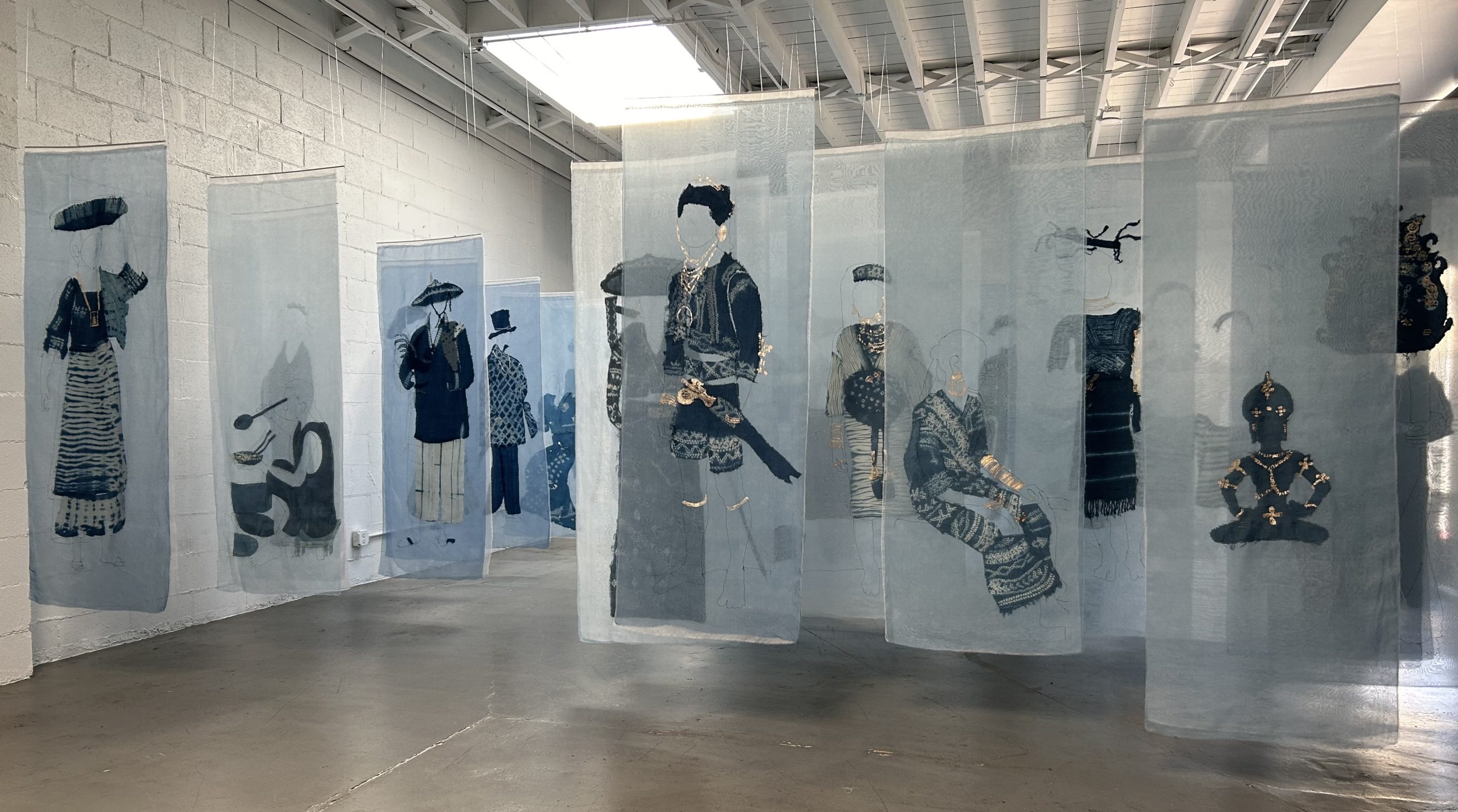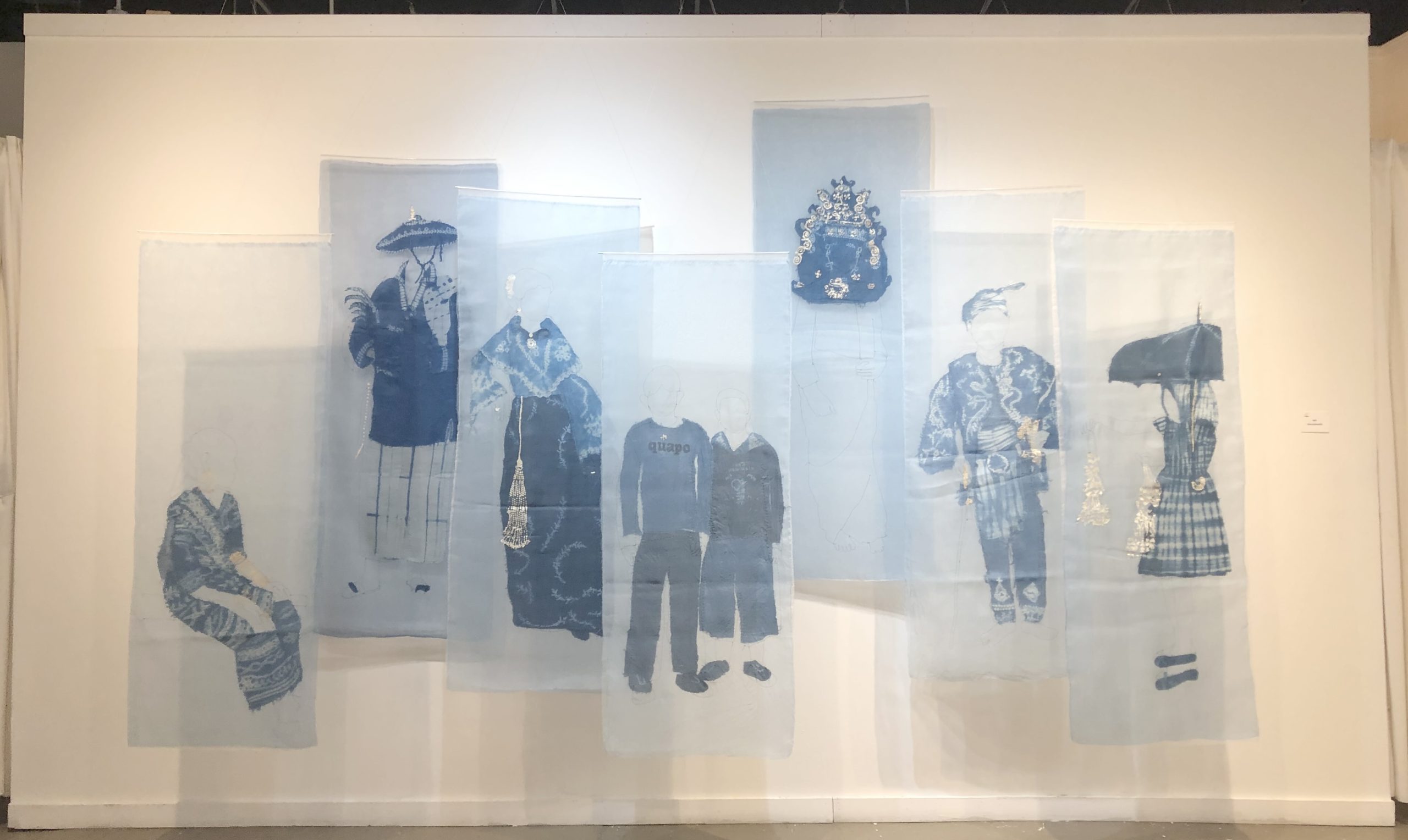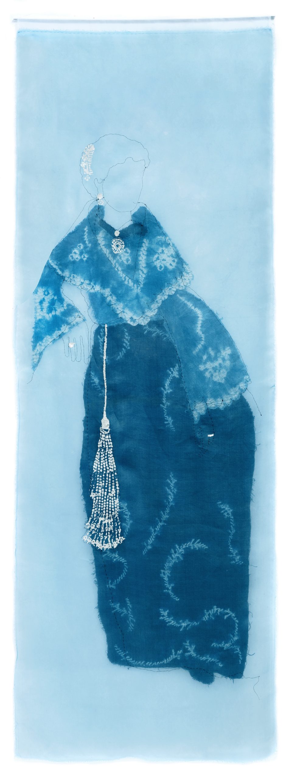 When my father returned to the Philippines, I was left with only scattered memories and fragments of rituals, sounds, gestures and tastes of belonging. Through this collection of work, I wonder, is this personal loss and disorientation entirely distinct from experiences shared by repeatedly colonized and displaced peoples the world over? Is it possible to reclaim a semblance of continuity by resuscitating our history and thus asserting our right to exist? Slowly and methodically, I search both personal and public archives seeking insights that have been lost to time—often through purposeful destruction and displacements caused by serial colonization and its unsettling wake. I dye, layer and stitch, inviting the past into our present, claiming memories that haunt my existence and seeking ghosts with whom I want to be in conversation. In Blue Remnants, I try to make sense of the histories and cultures that shape my every day, but that I struggle to know.