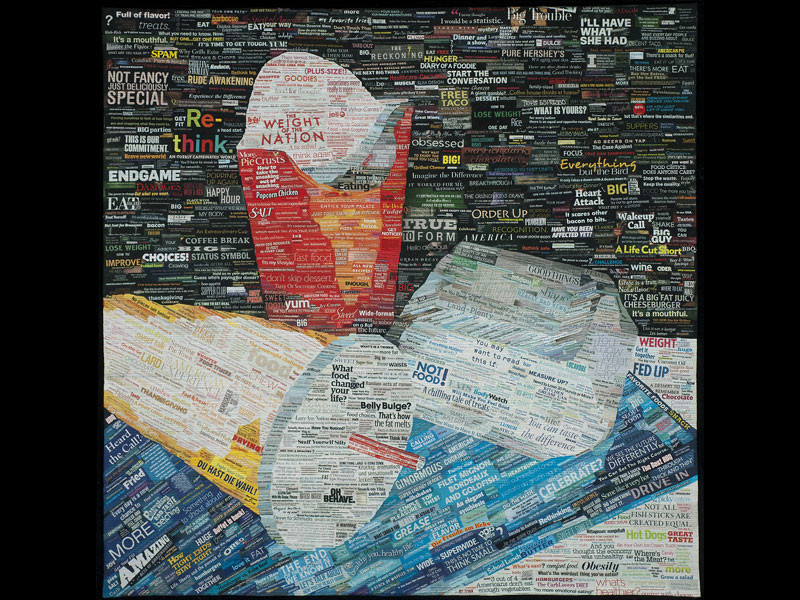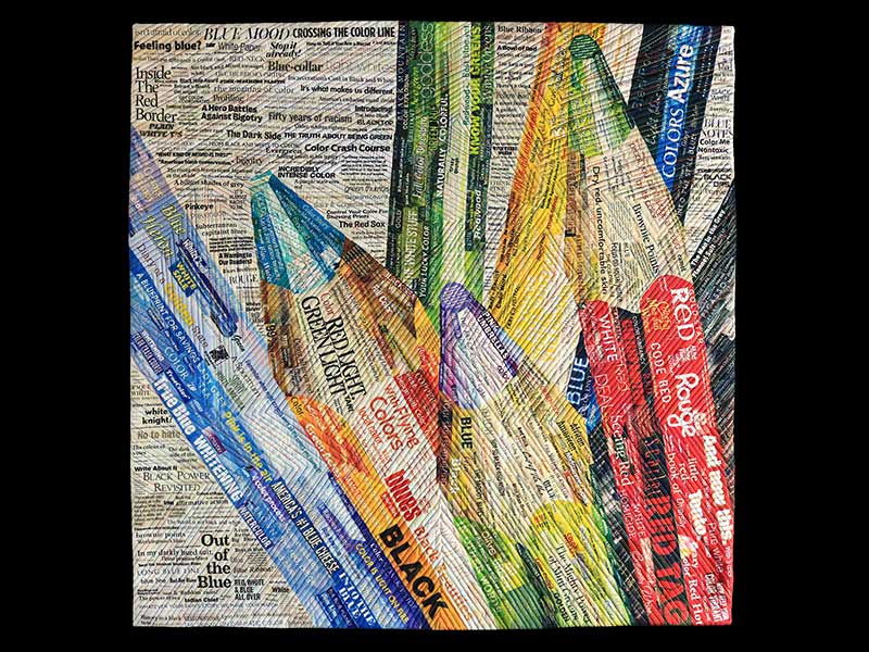 Digitally-printed cotton by artists using fiber reactive dye. Wool batting. Commercial cotton back. 36" h x 67.5" w