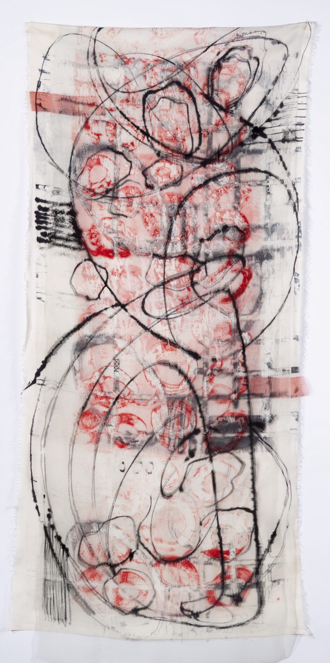 Monoprint, Dye, Hand Stitching, Silk 33” x 55”