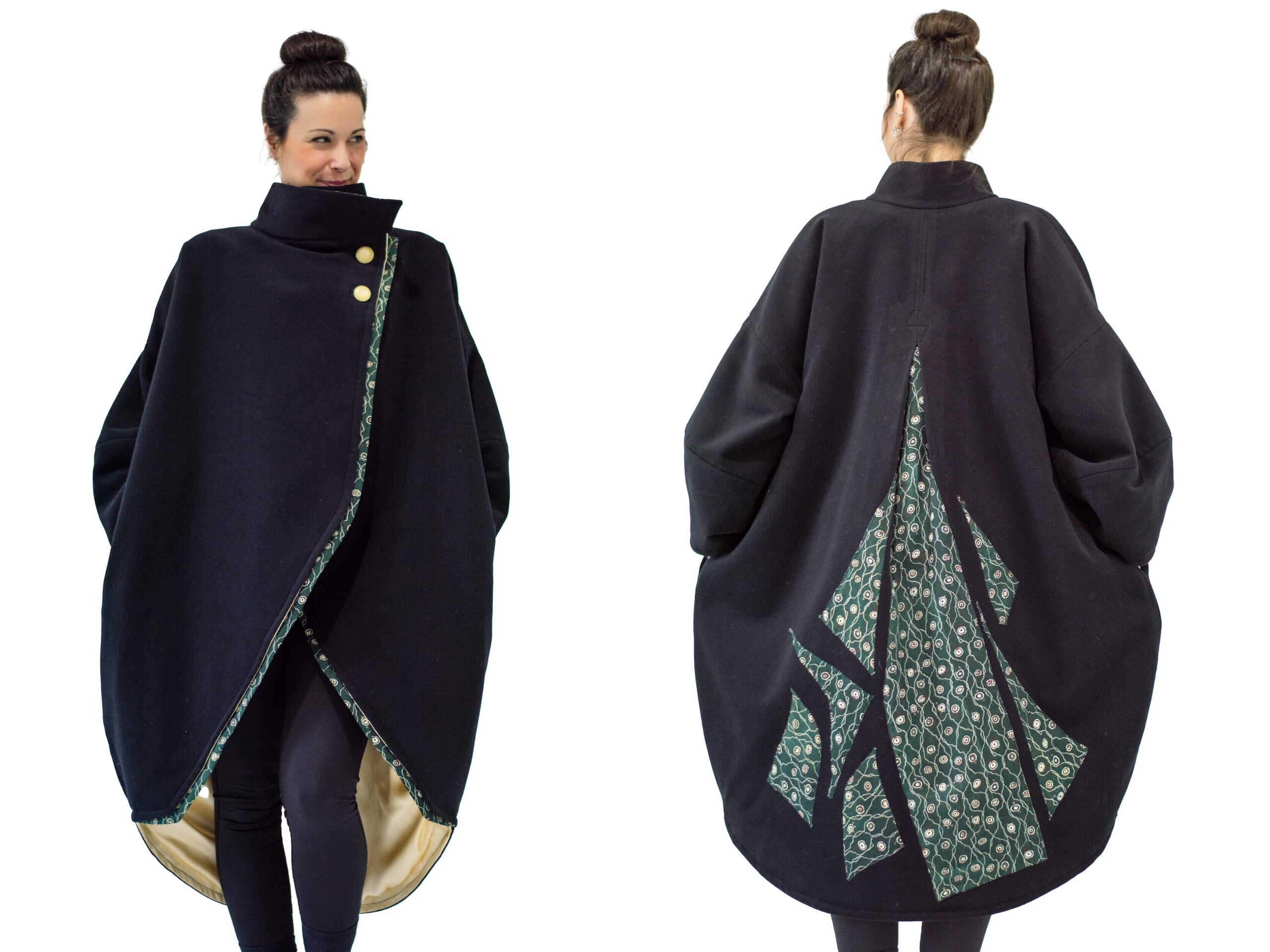 Felted Wool (dead stock), Silk Charmeuse (dead stock), Silk Obi (Vintage), Vintage Buttons 45 x 50 x 25