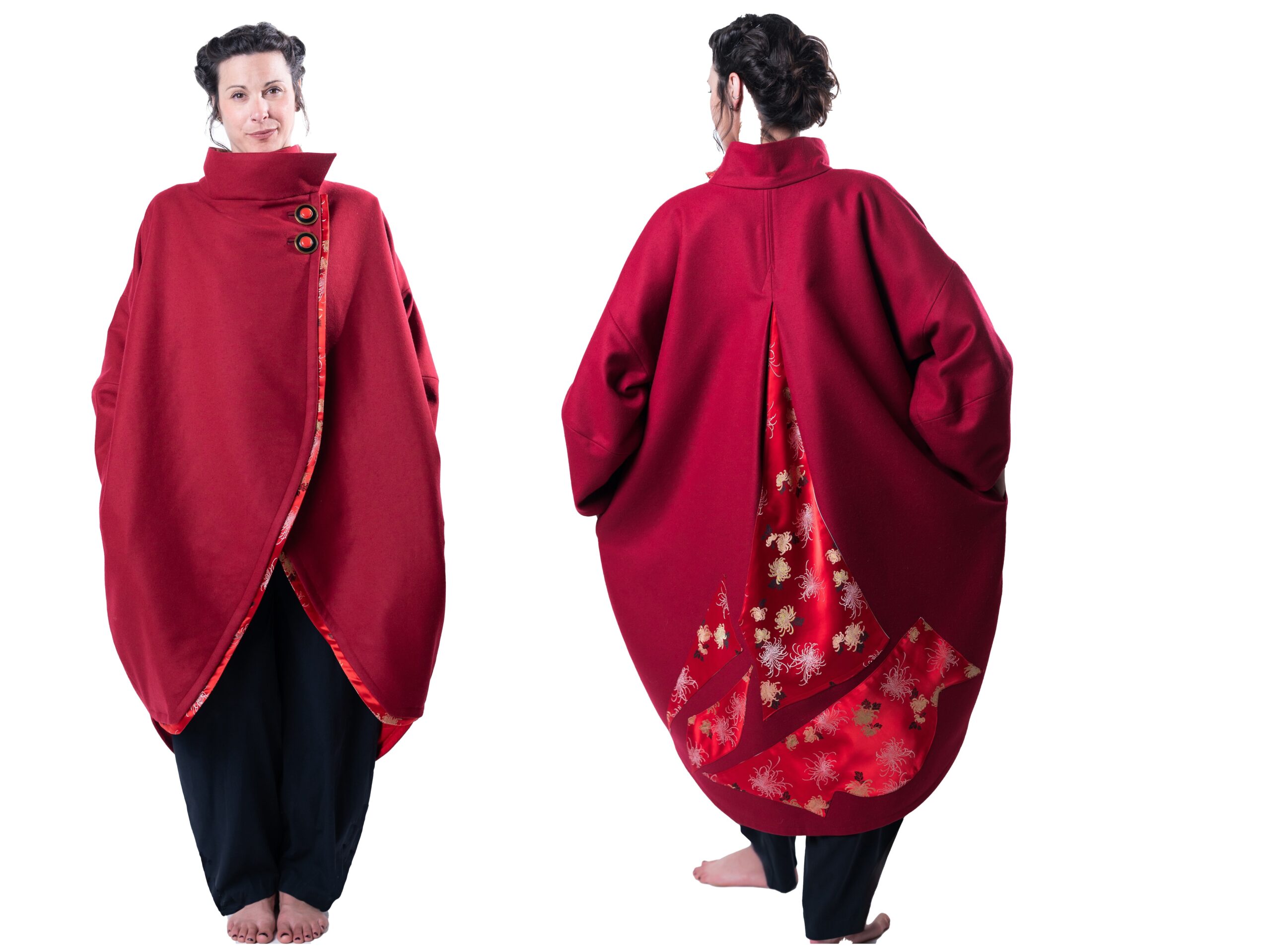 Red Wool (dead stock), Red silk Dupioni (dead stock), Silk Obi (Vintage), Vintage buttons 45 x 50 x 25