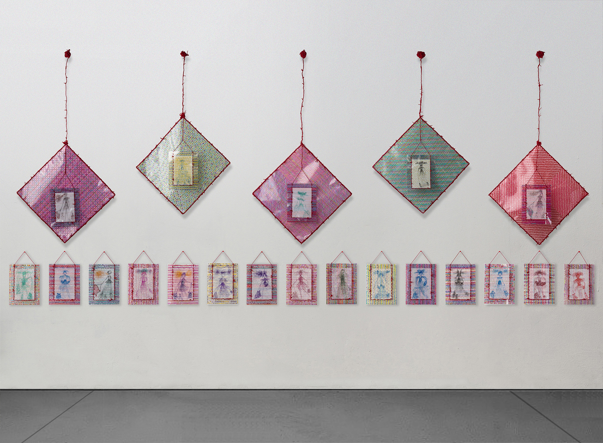 acrylic paint & pen on dura-lar, chenille stems 58"h x 42"w x 6"d