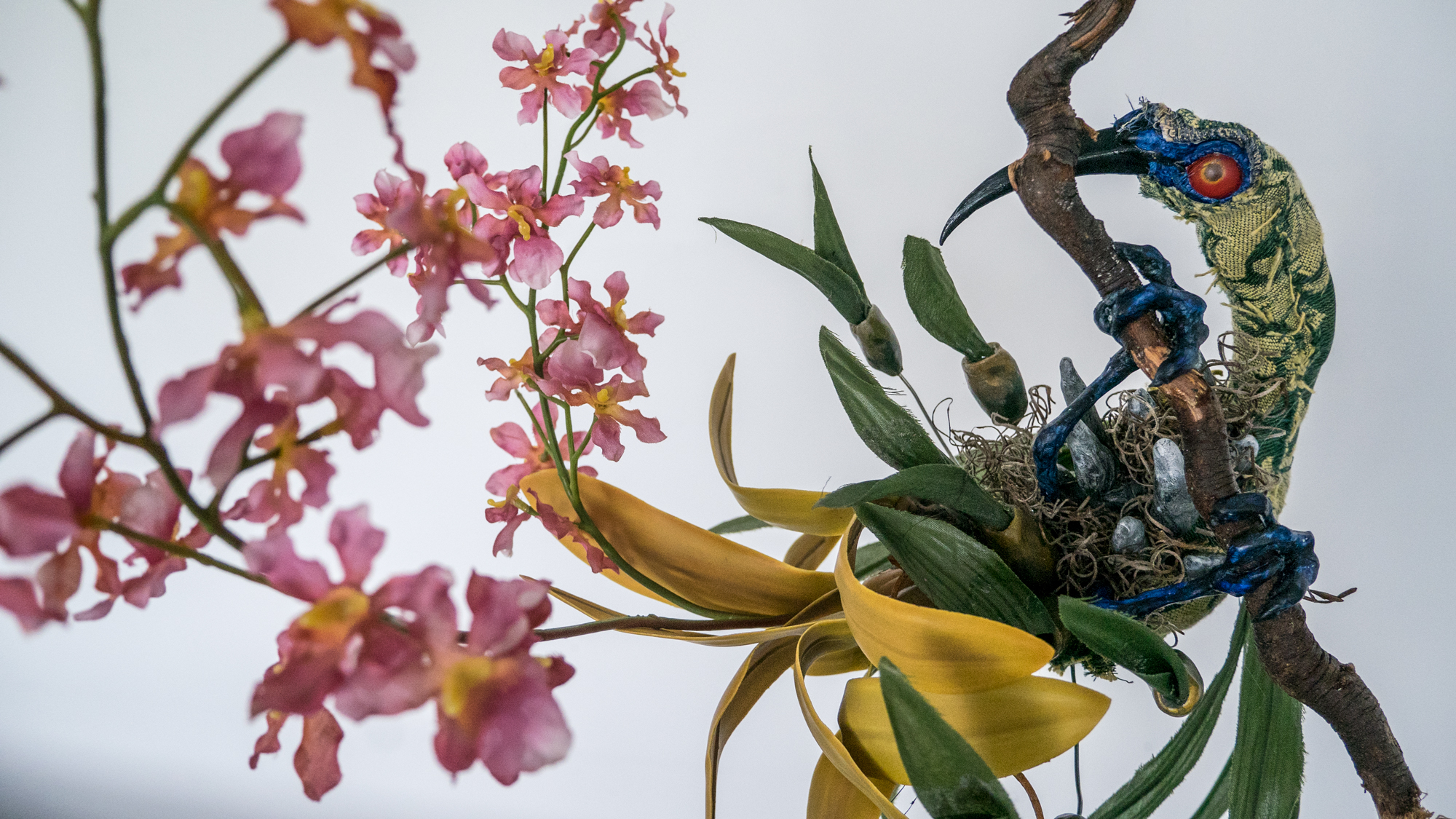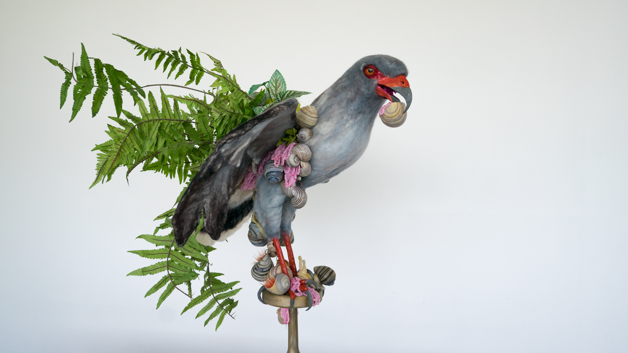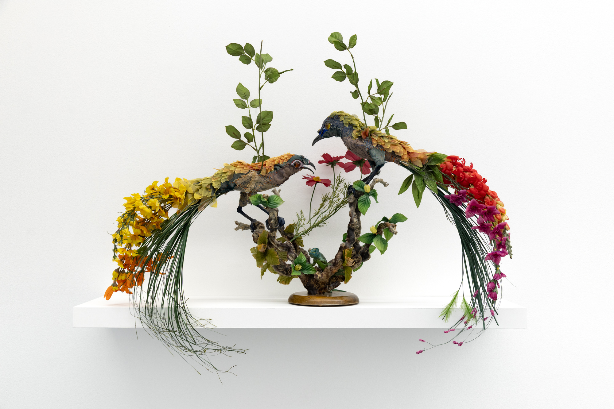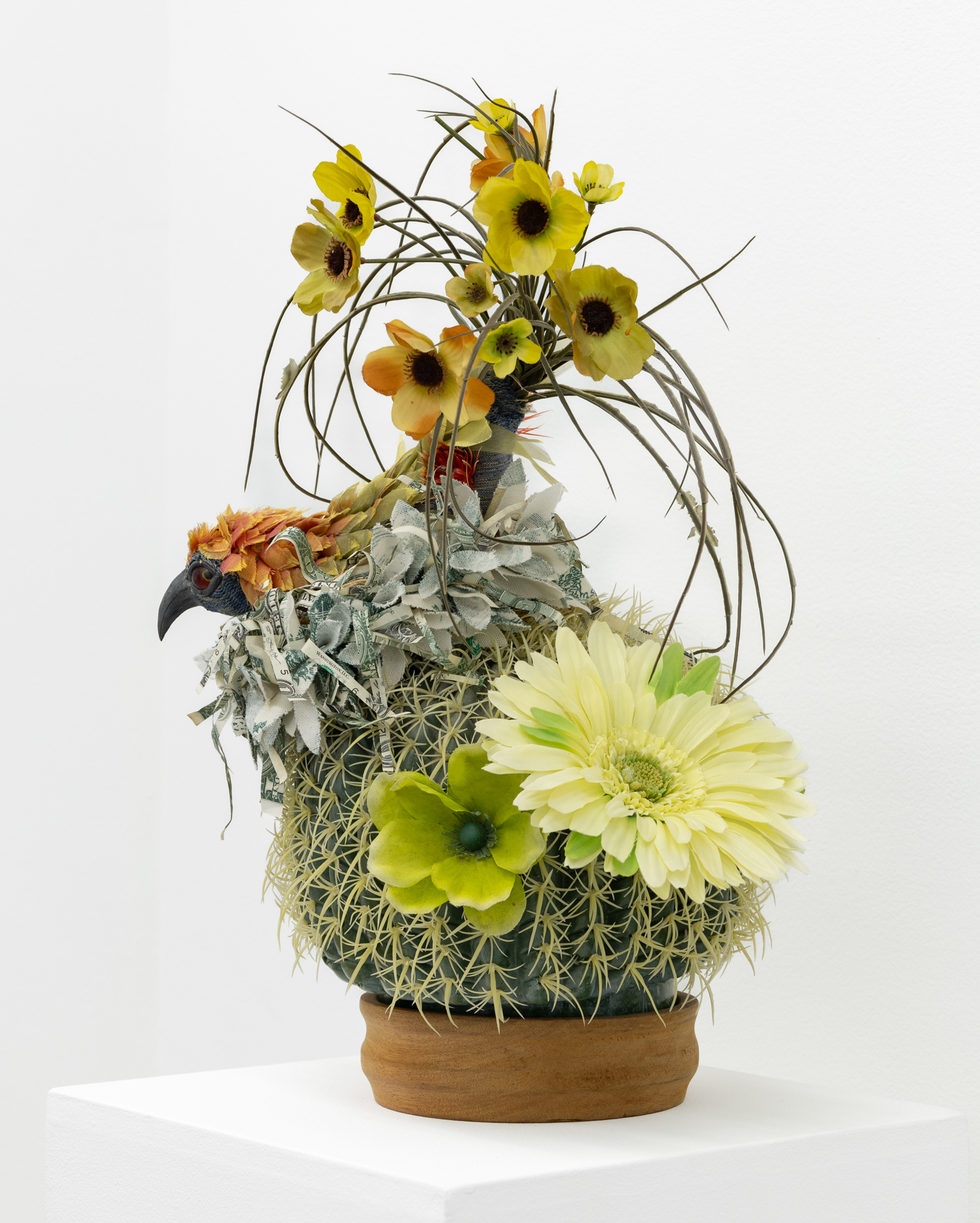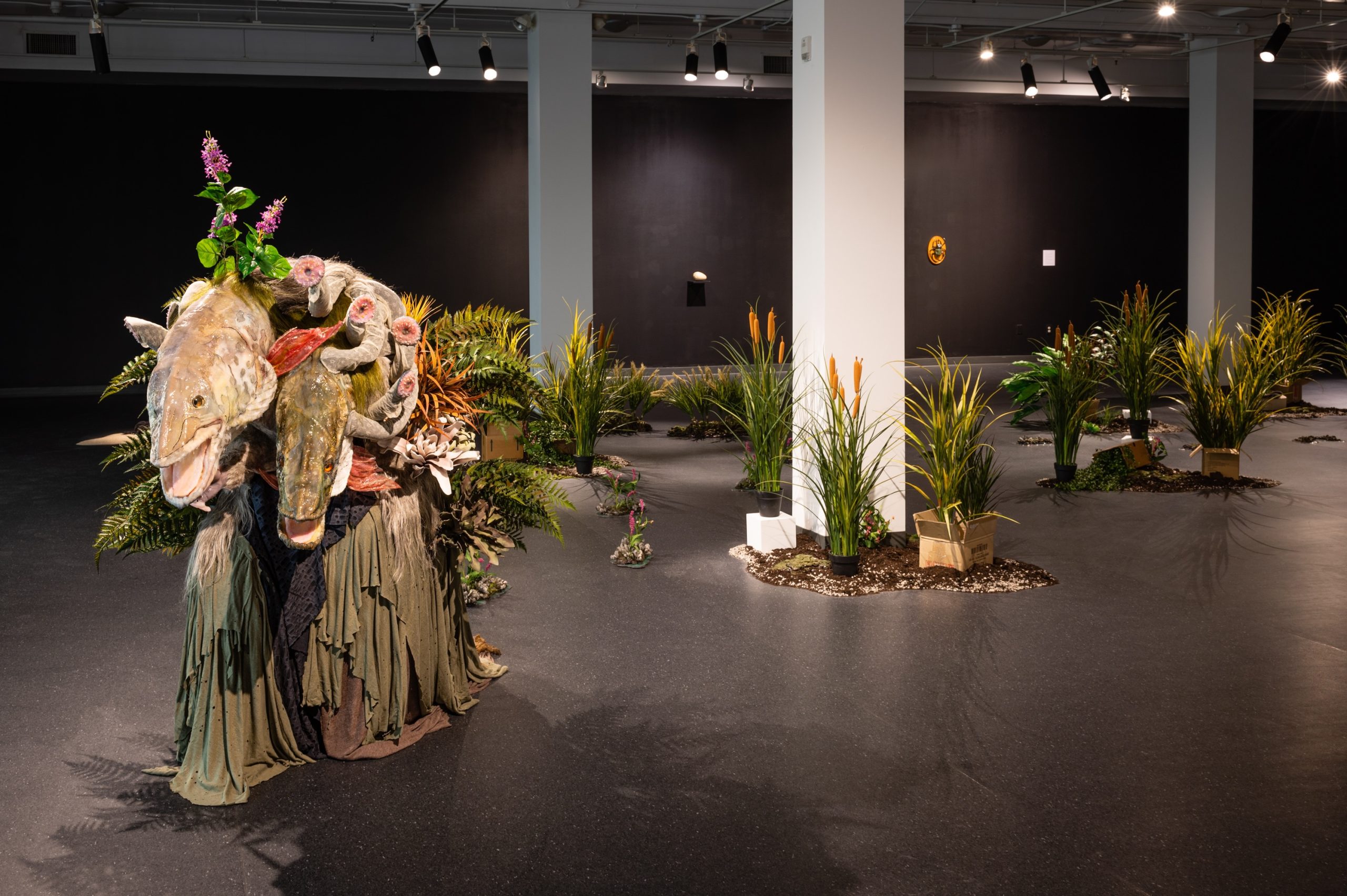Mixed media – wool, reed, resin, silicone, found objects, beads 24" x 30" x 48"