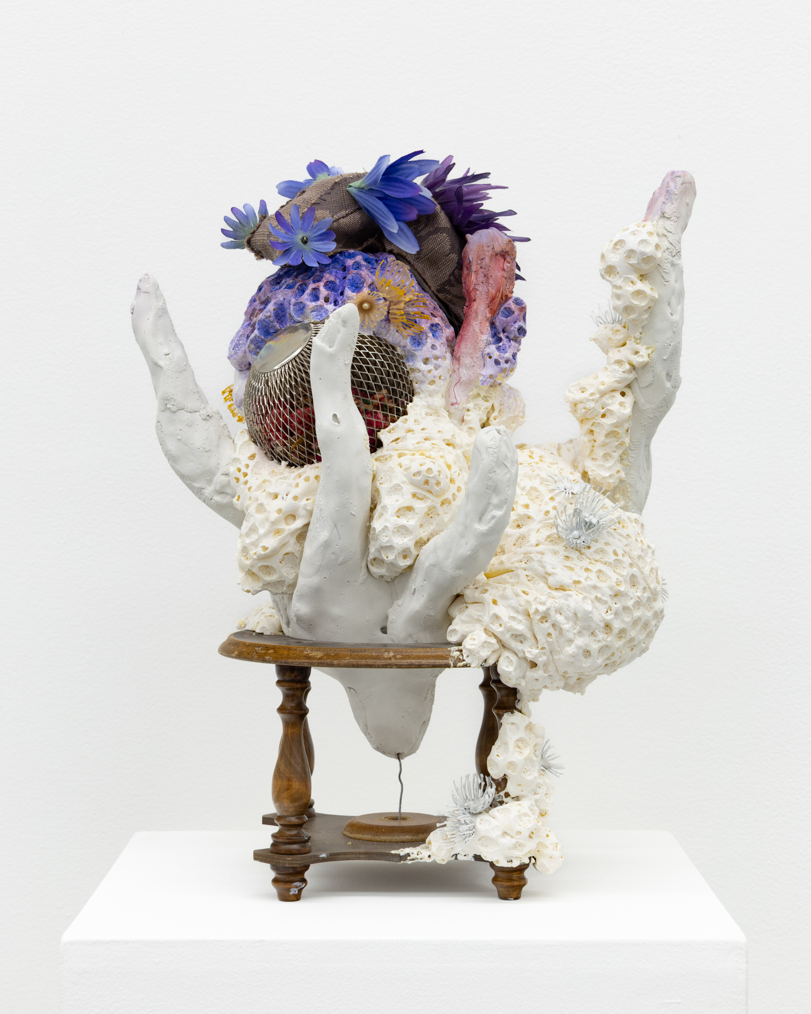 Recycled textiles, found objects, resin, plaster 12" x 12" x 14"
