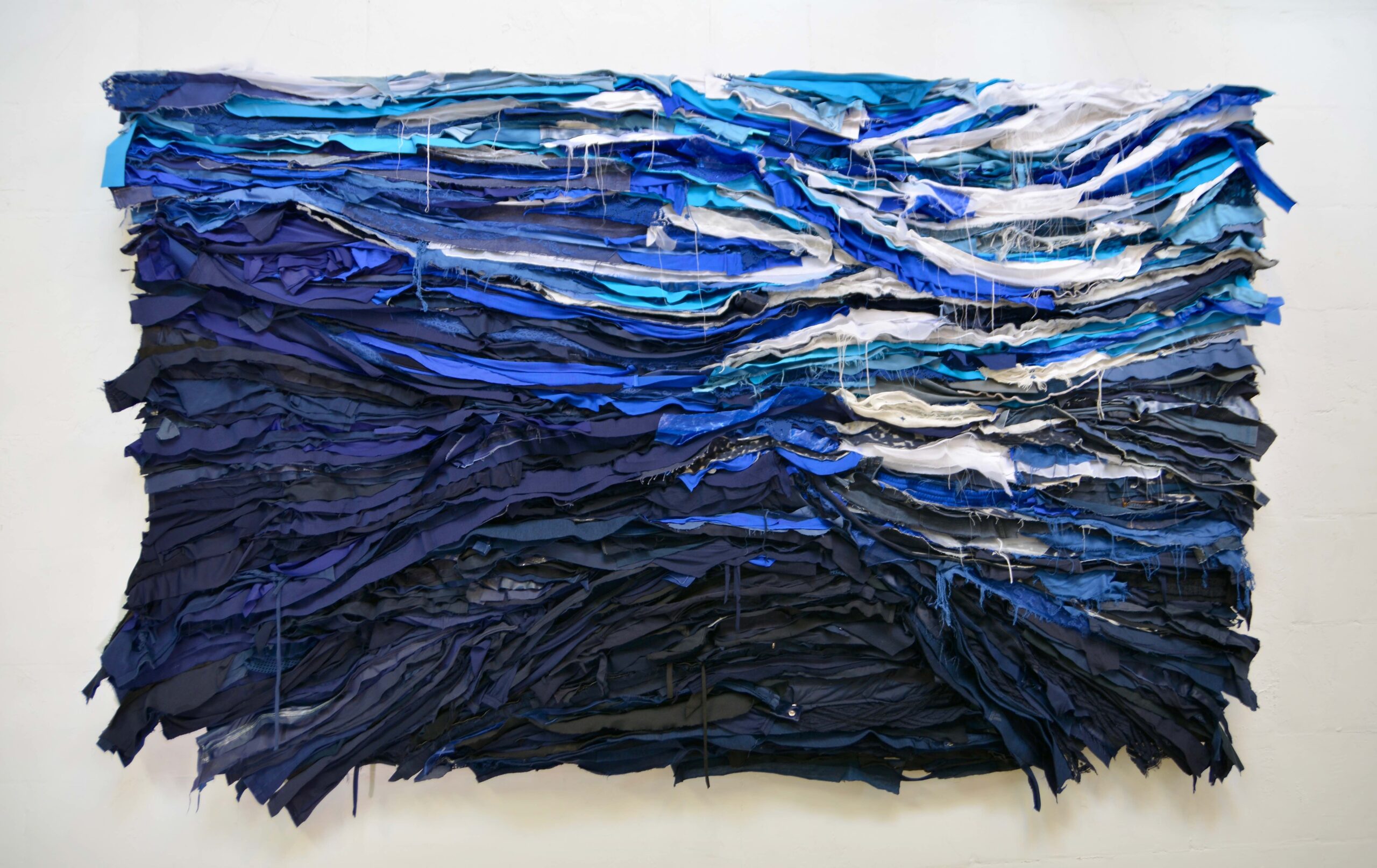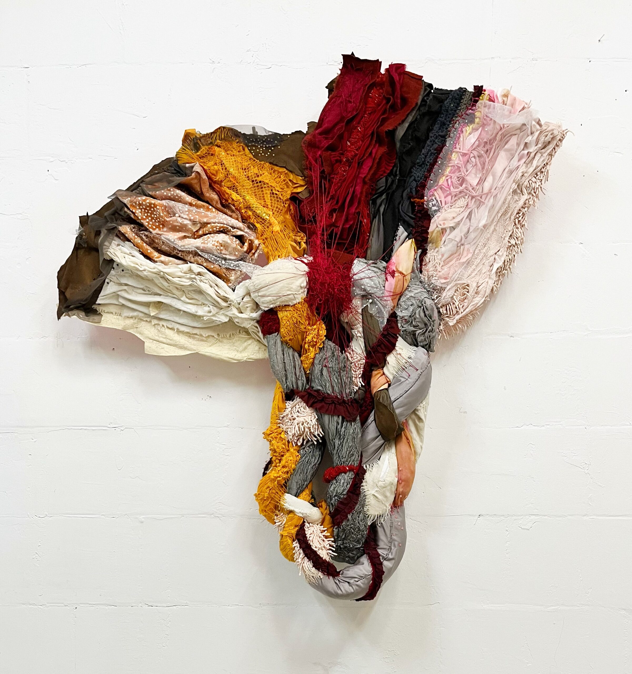various repurposed textiles, embroidery silk yarn 141 x 138 x 18 cm