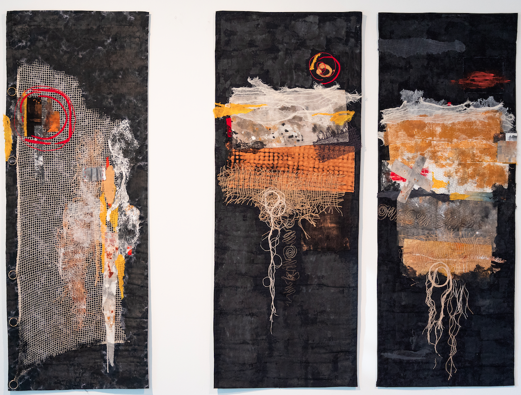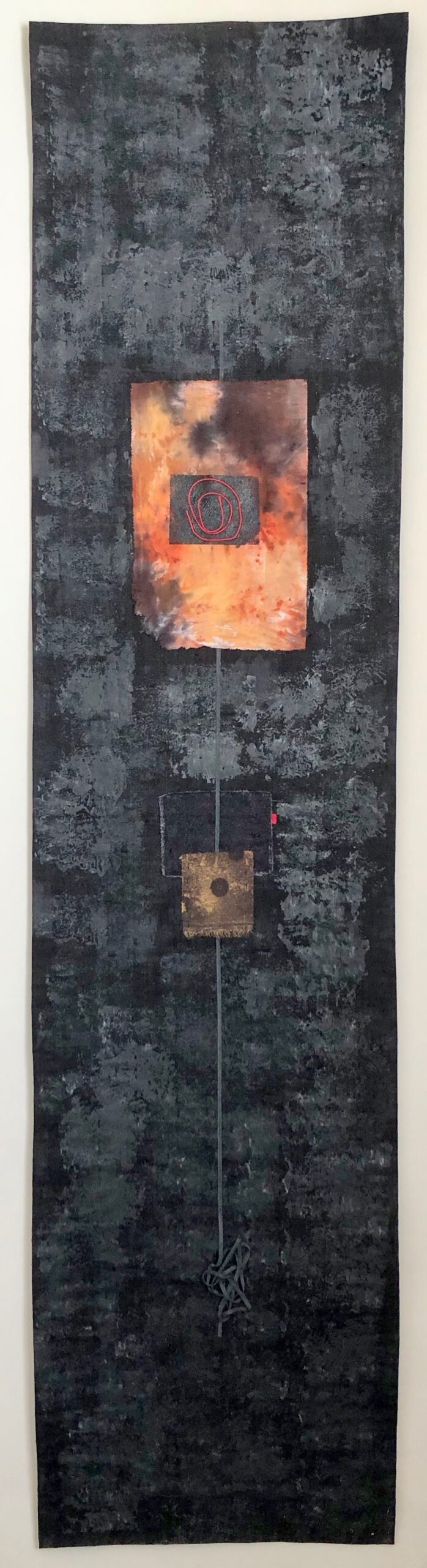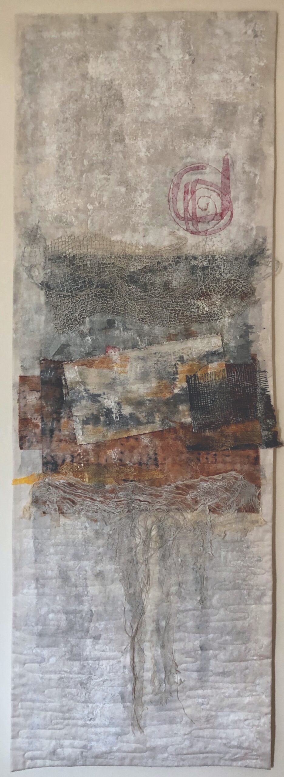 Cotton, antique netting, Japanese matting, scrim, paint 152 x 53 cms