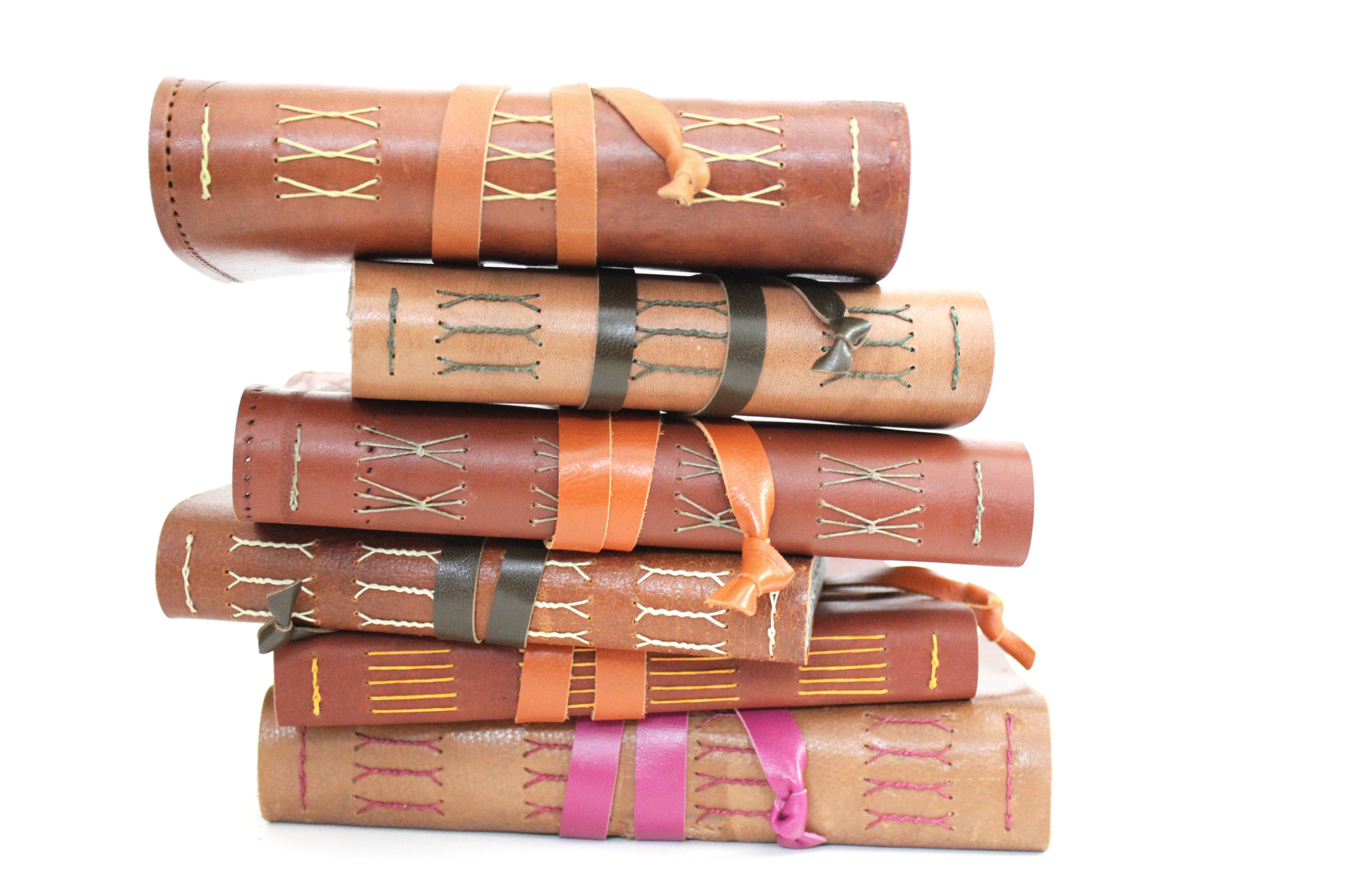 Paper, vintage covers, linen thread, leather 7" x 6"