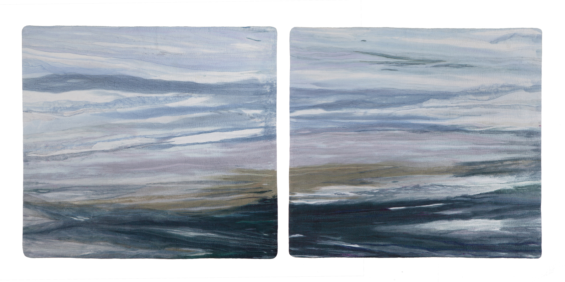 Waste silk, industrial felt, fabric paint, dyes, lint, my hair, fiber stiffeners, used self-dyed cotton sheets, & duvet covers Height 75” Width 66” Depth 5”