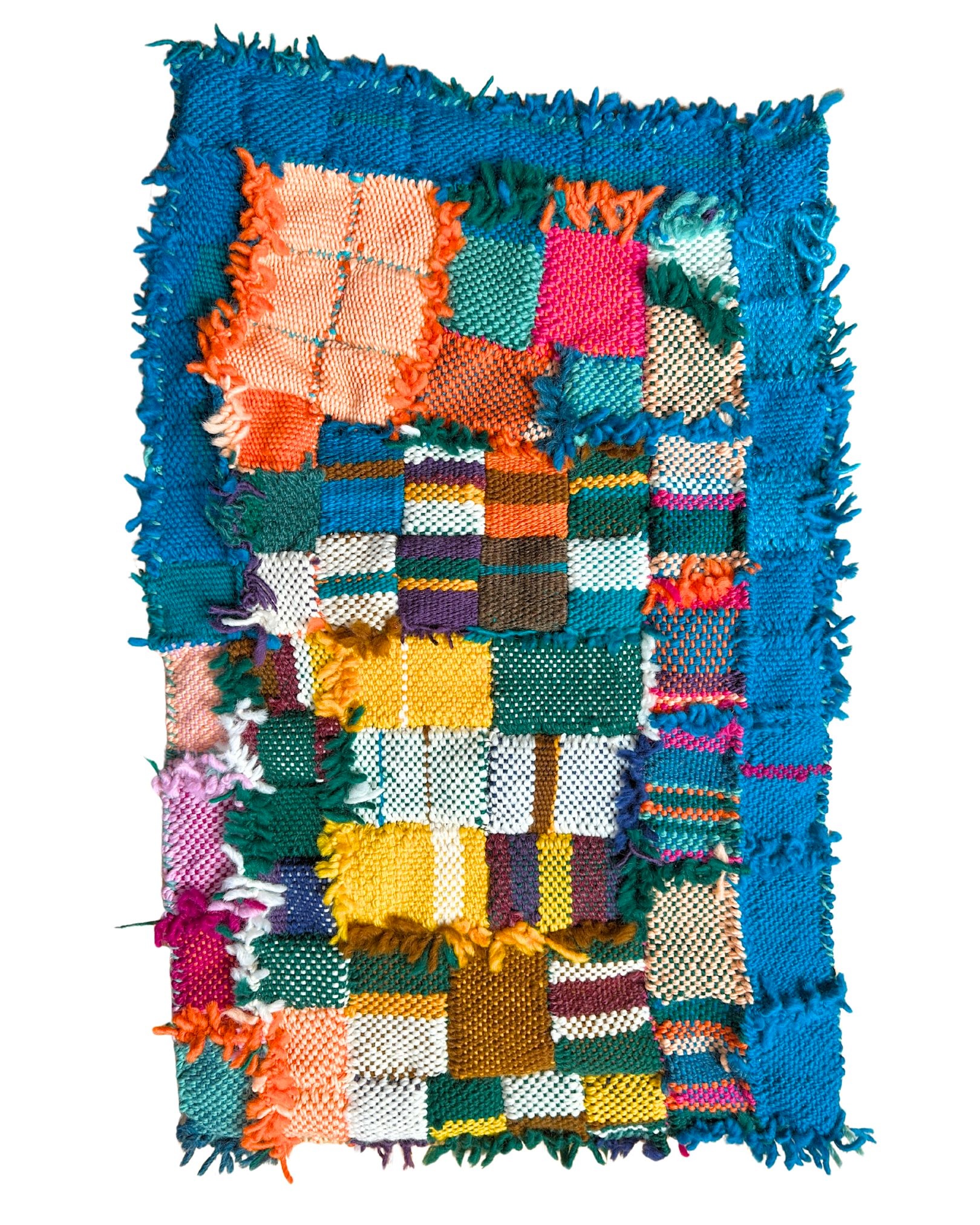 In January 2025, I worked with adults with disabilities to learn how to weave. We then collaborated on making a woven quilt. They created the pieces with me, and then I designed, assembled, and sewed them together. Each woven piece shows the joy of building something vibrant as a community.