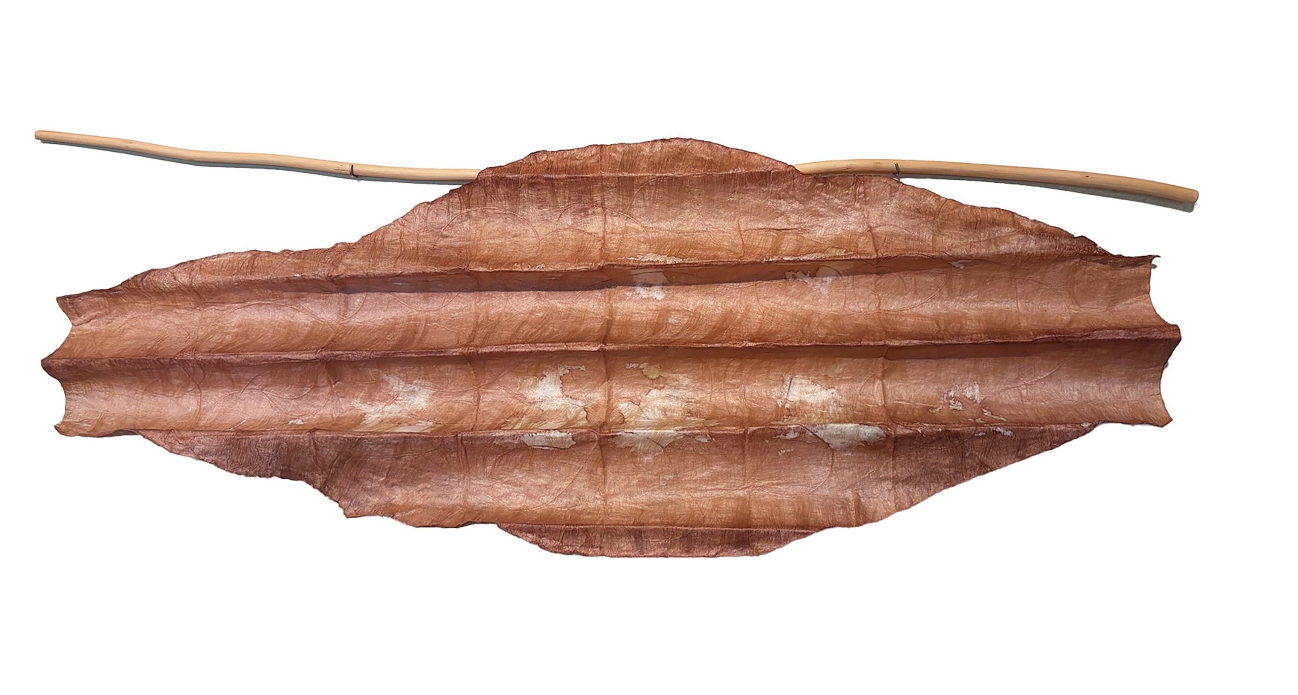 Handmade flax fiber paper, kakishibu, wood, silk thread 36 x 16 x 4 inches