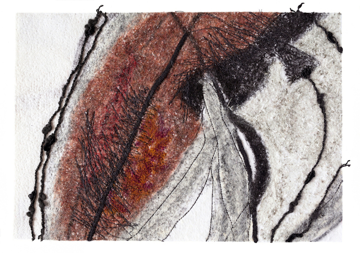 This is a translation of a drawing made with various marking mediums to fiber. With the onset of lockdown suddenly I was urgently compelled to work without color, something I had never done before. This, and others in this series, helped me process my thoughts in that scary time.
