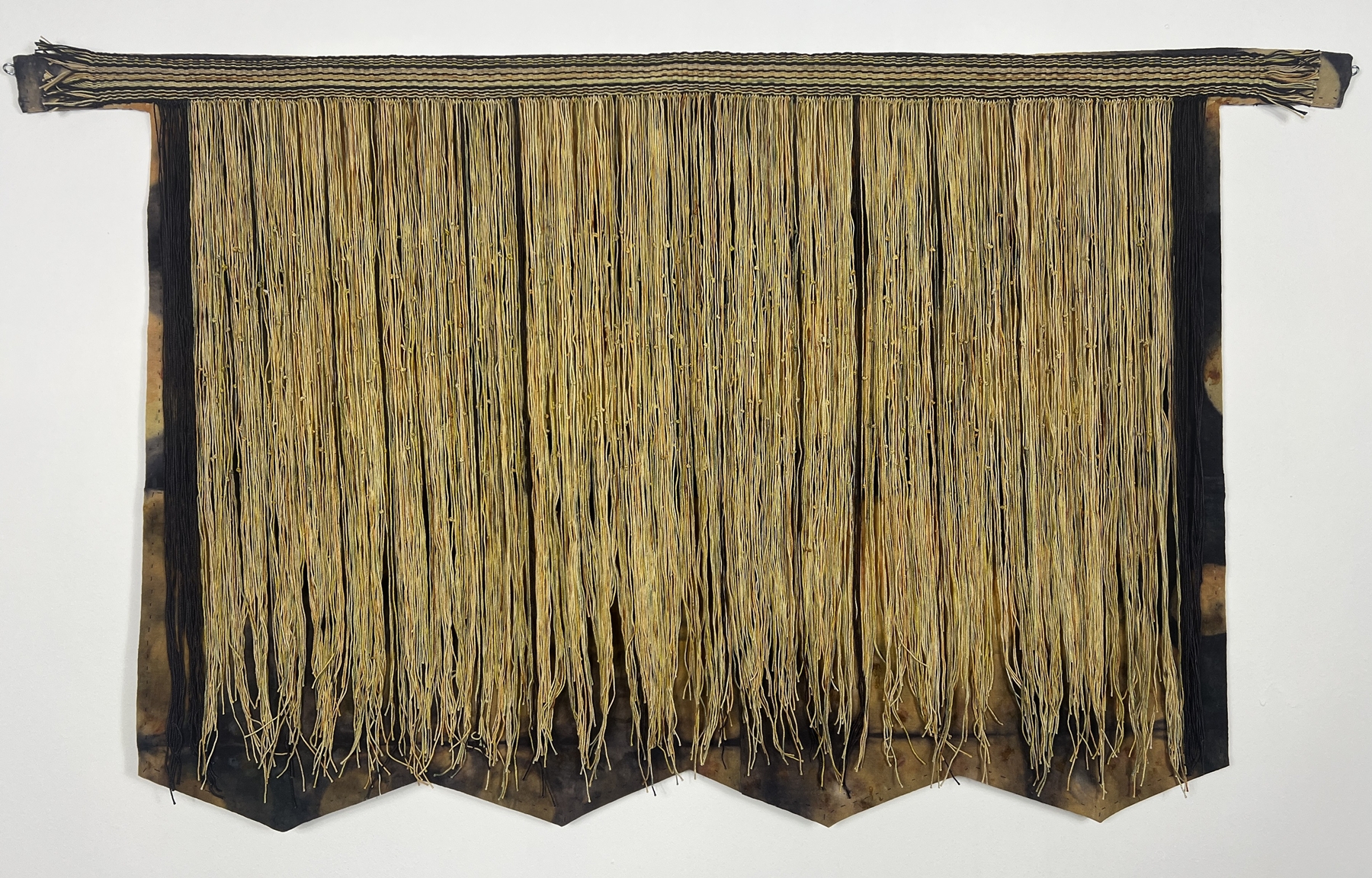 Mercerized cotton dyed with iron and tannins on painted canvas 19" x 41"