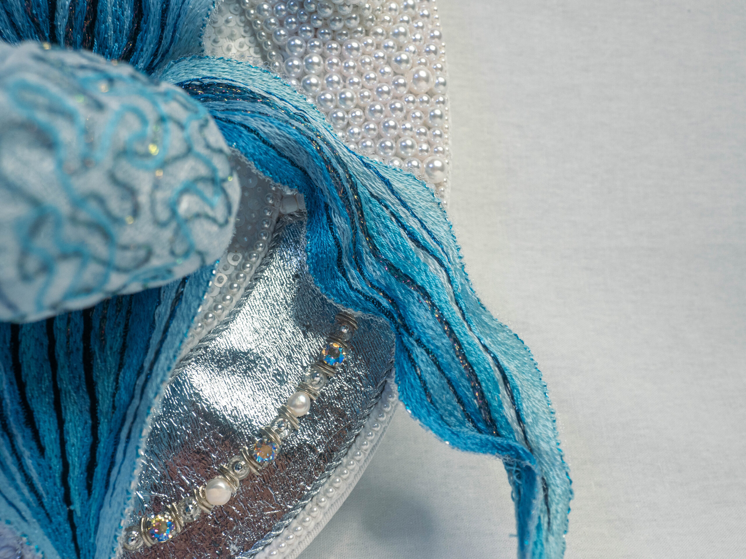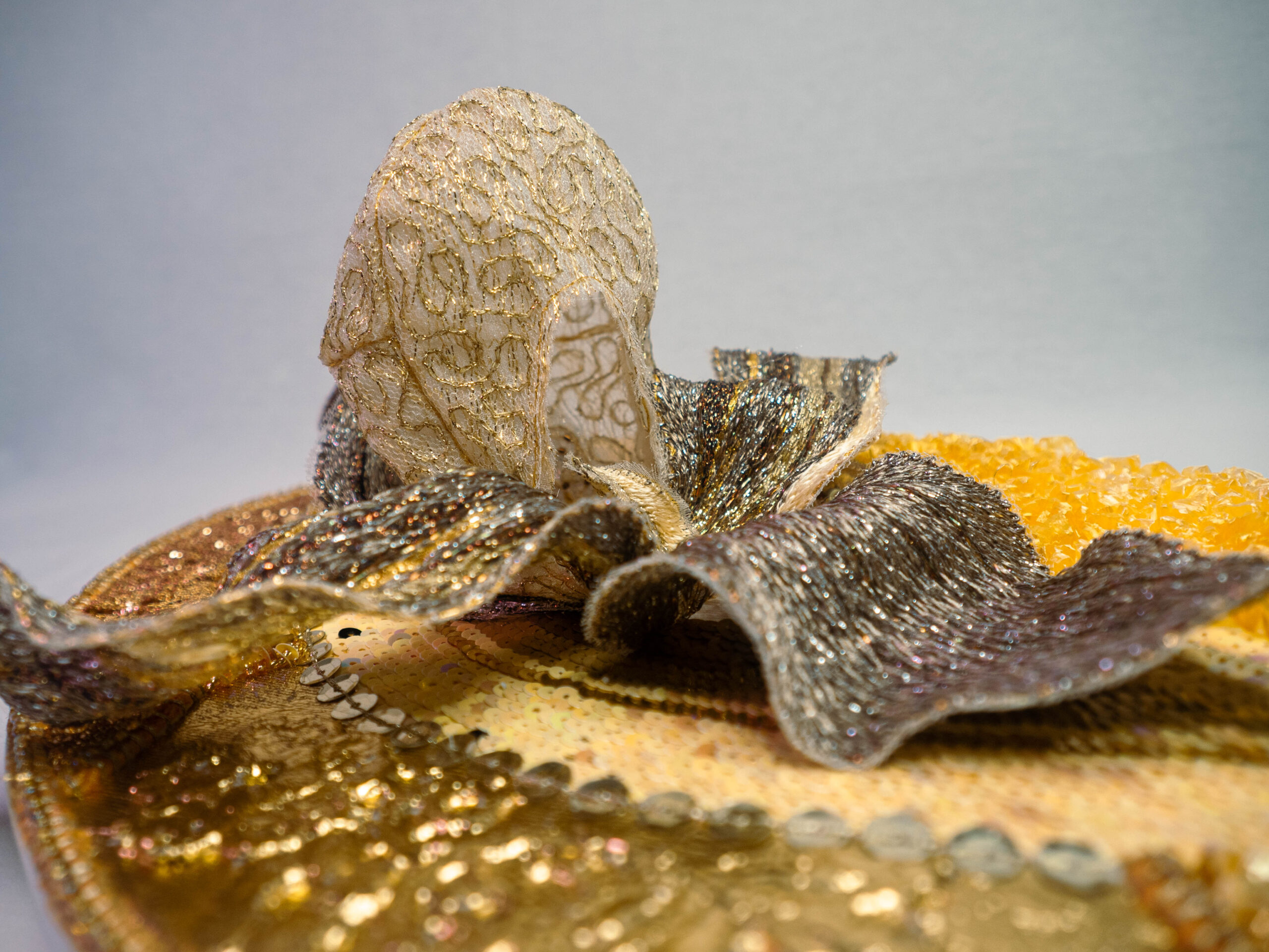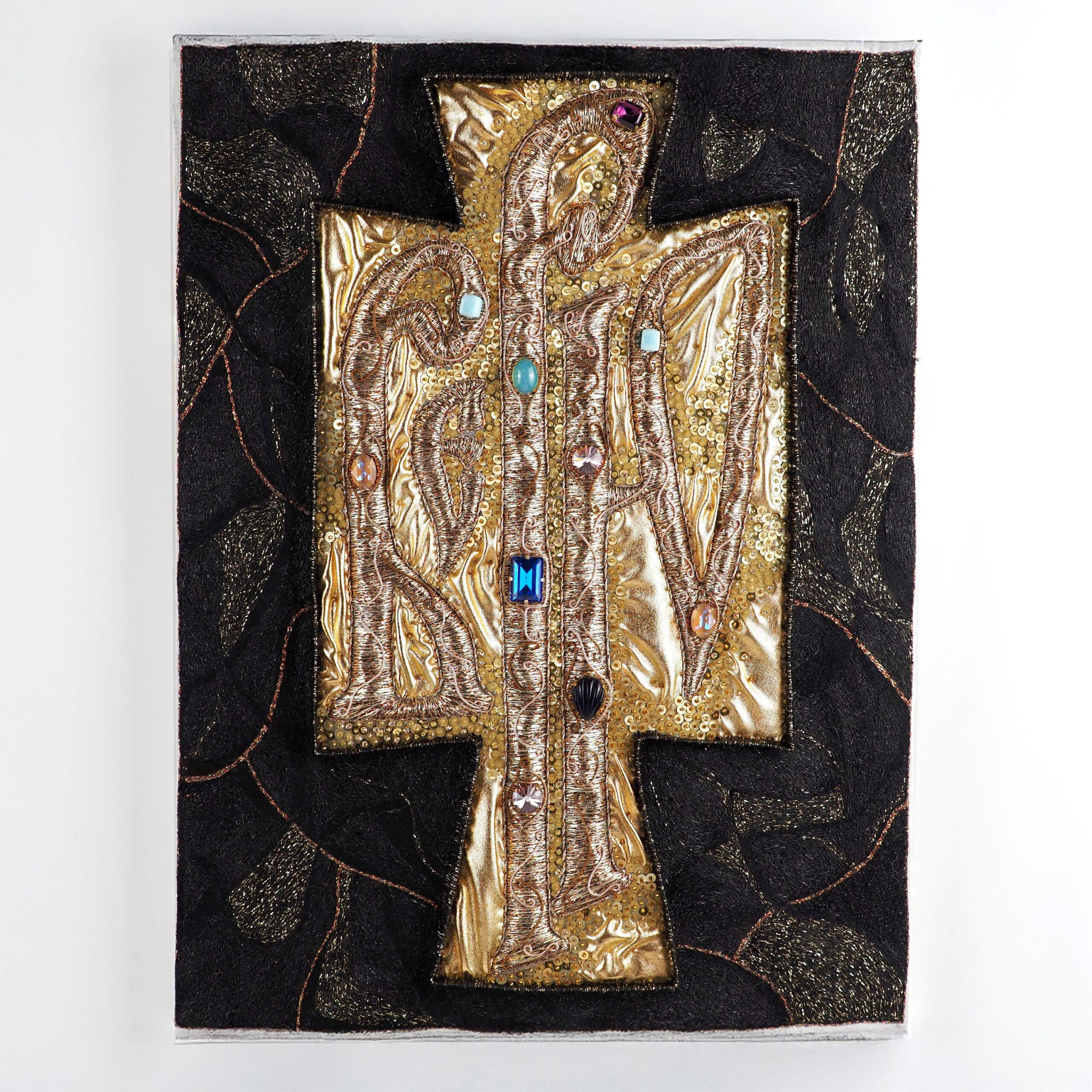Metallic and cotton threads, sequins, crystals, textile 30x42cm