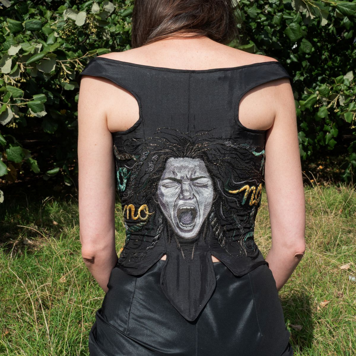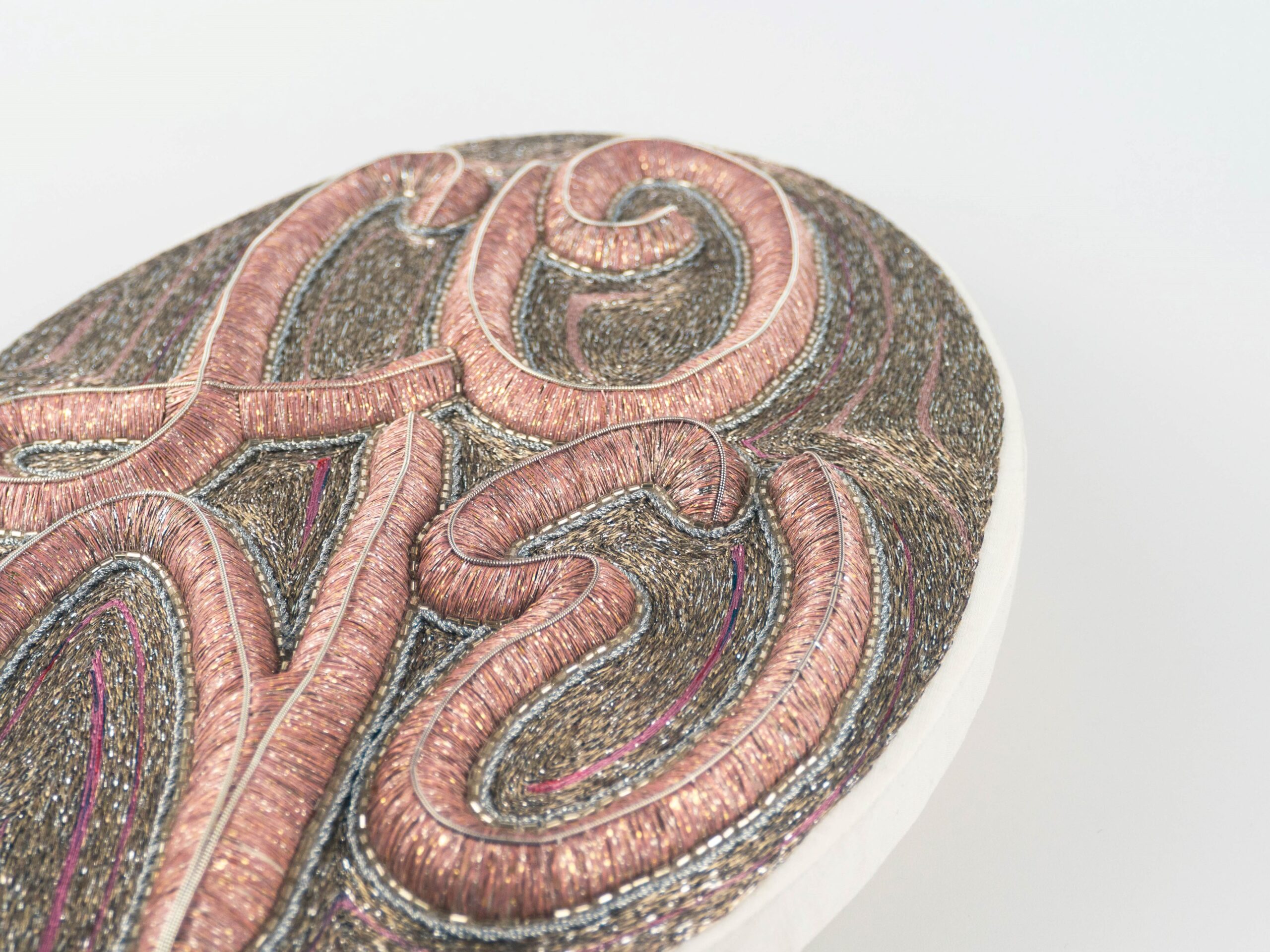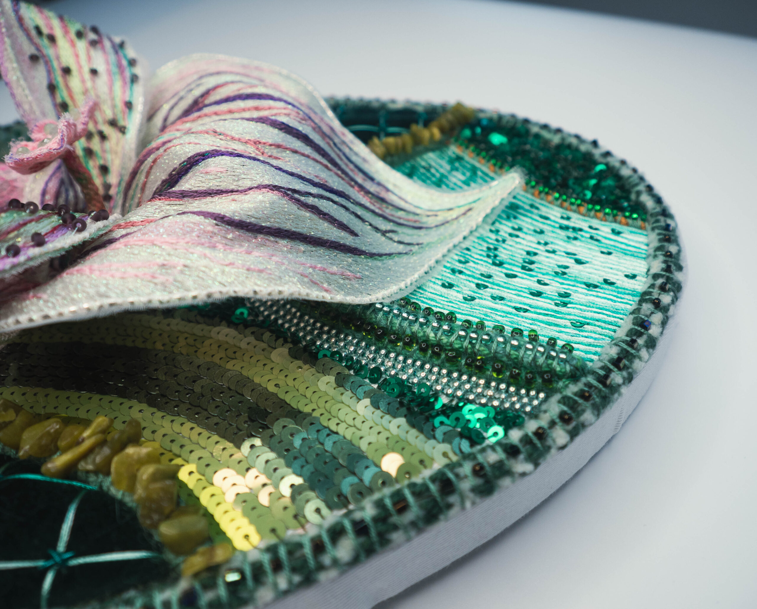 Metallic and cotton threads, sequins, crystals, textile 30x42cm