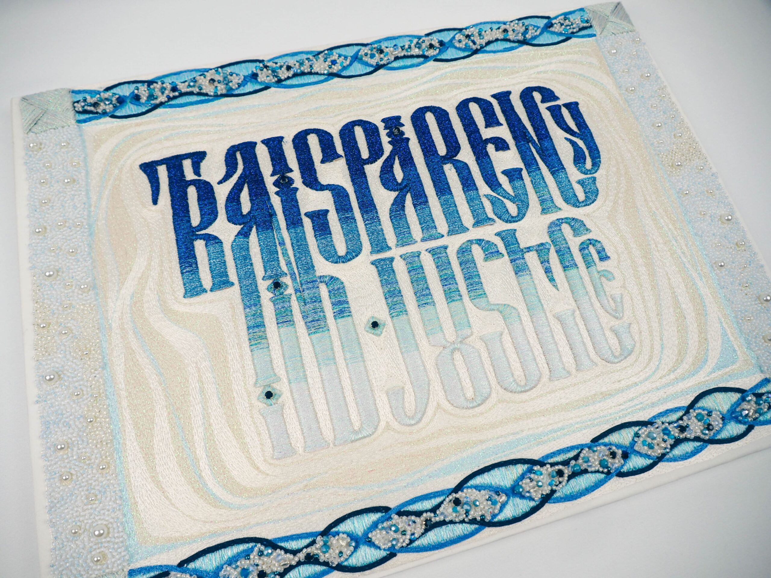 Believe, hand embroidery composition features vayz lettering