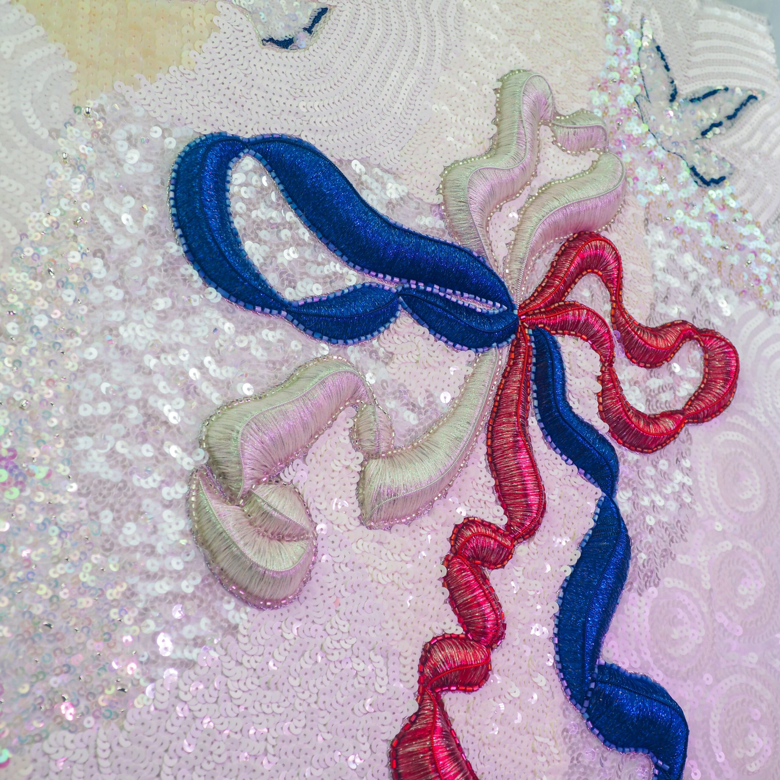 sequins, metallic threads, beads, French wire 42x60cm
