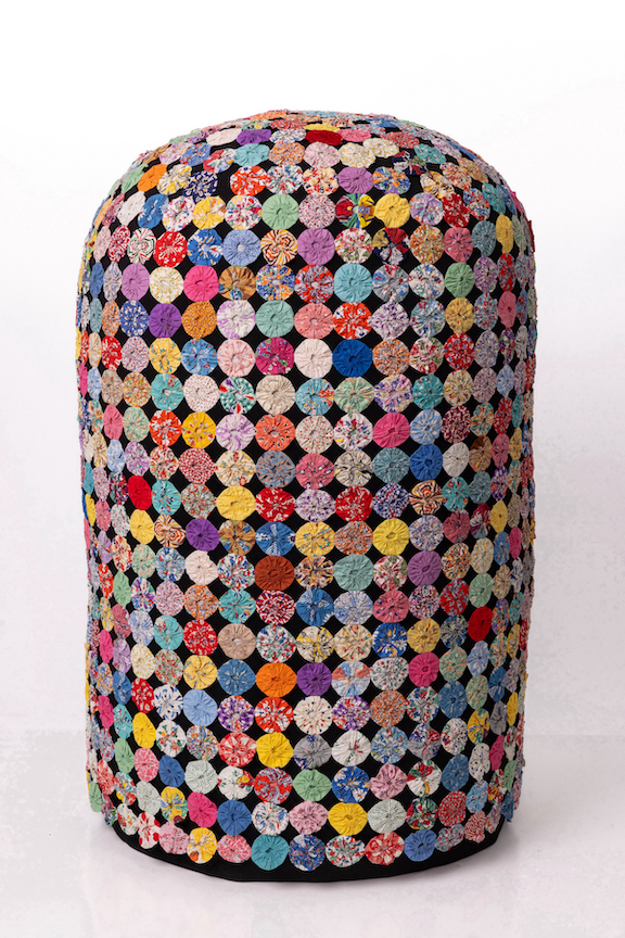 altered found coverlet (Yoyo pattern), polyester, batting, foam 45 x 27 x 27"