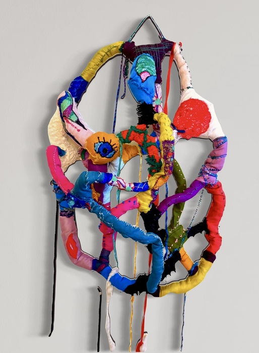 econstructed Amanda unspools a whimsical tangle of bright, stuffed forms that tease the outline of a figure coming undone. Its exposed wire and playful drips create a lively sense of identity dancing between collapse and reinvention.