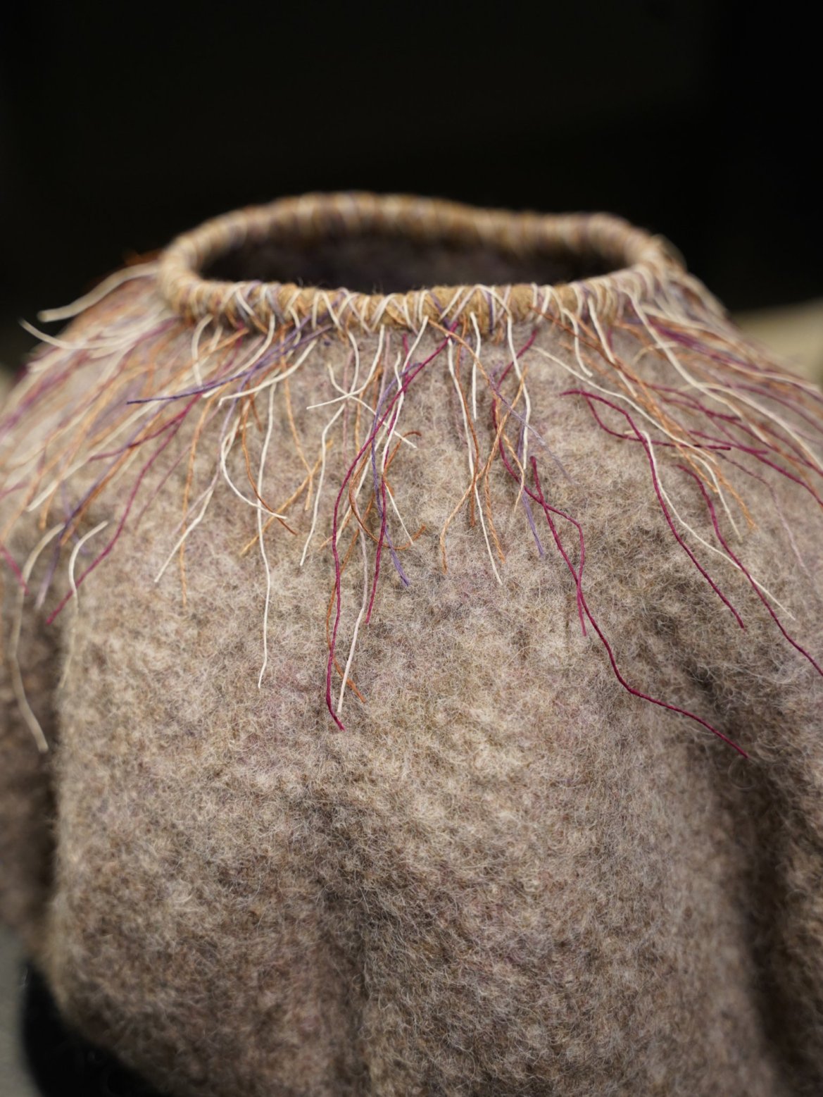 Wet-felted wool, hemp cord, driftwood 12.5”w x 10”h x 10.5”d