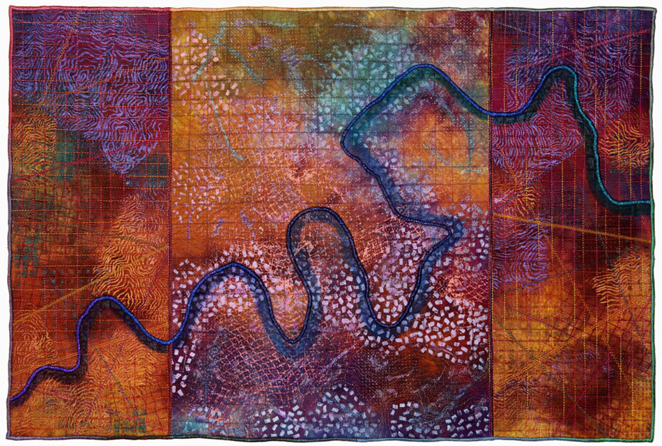 cotton fabrics, dye, paint, metallic foil, thread 48 x 32"